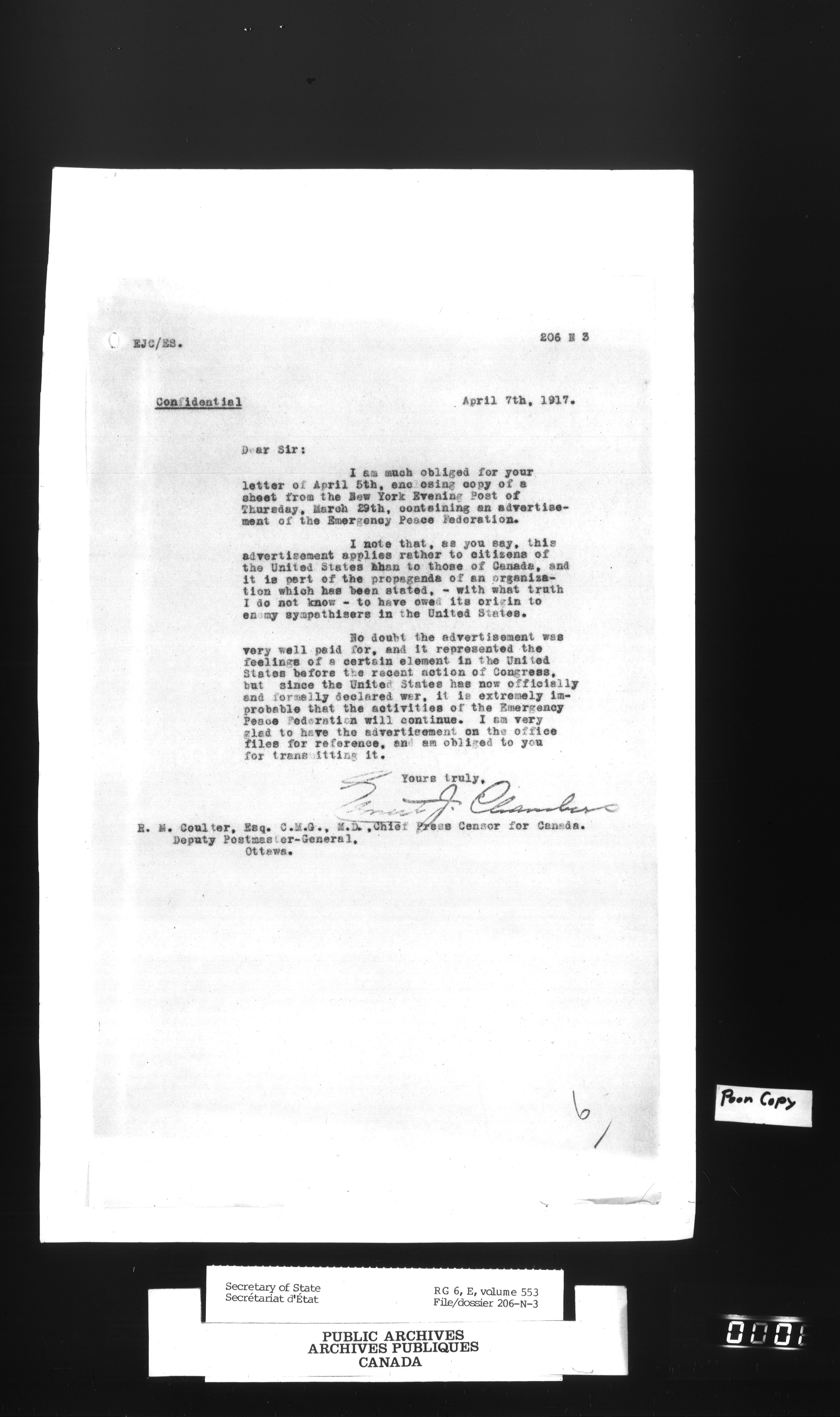 Secretary of State : Chief Press Censor, 1915-1920 - 56