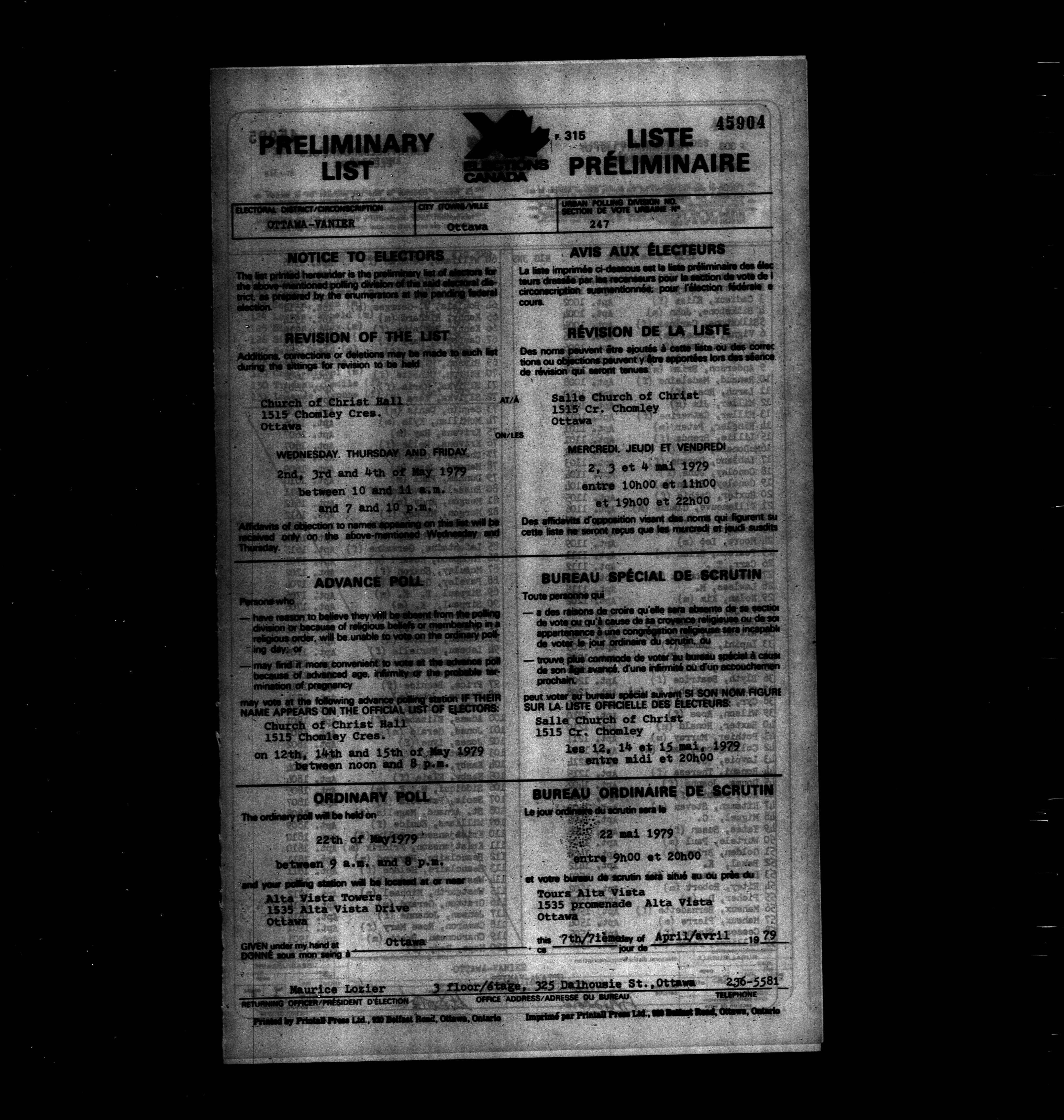 Office of the Chief Electoral Officer : Preliminary List of Electors : T-578