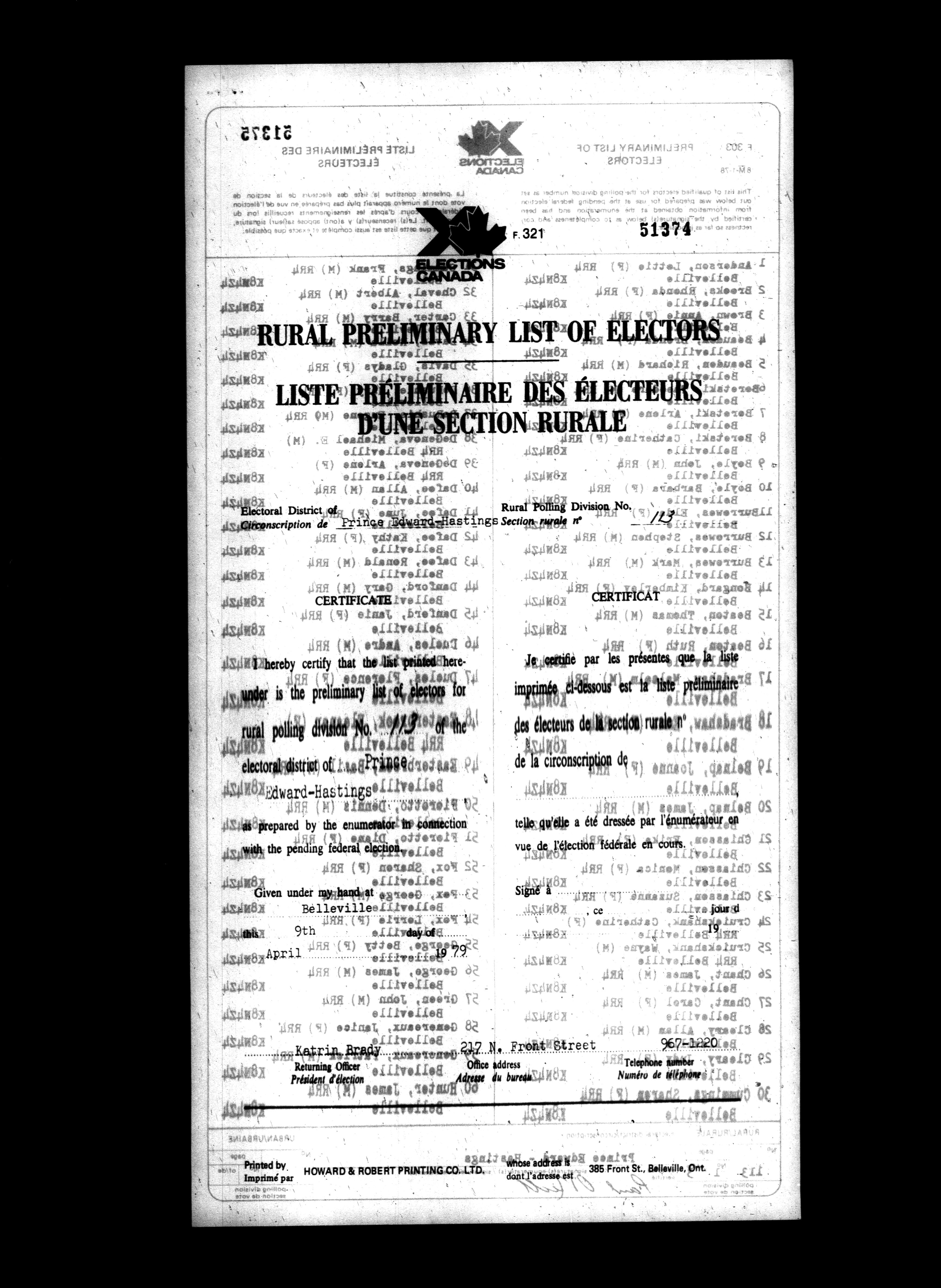 Voters' lists Ontario, 1979 - 582
