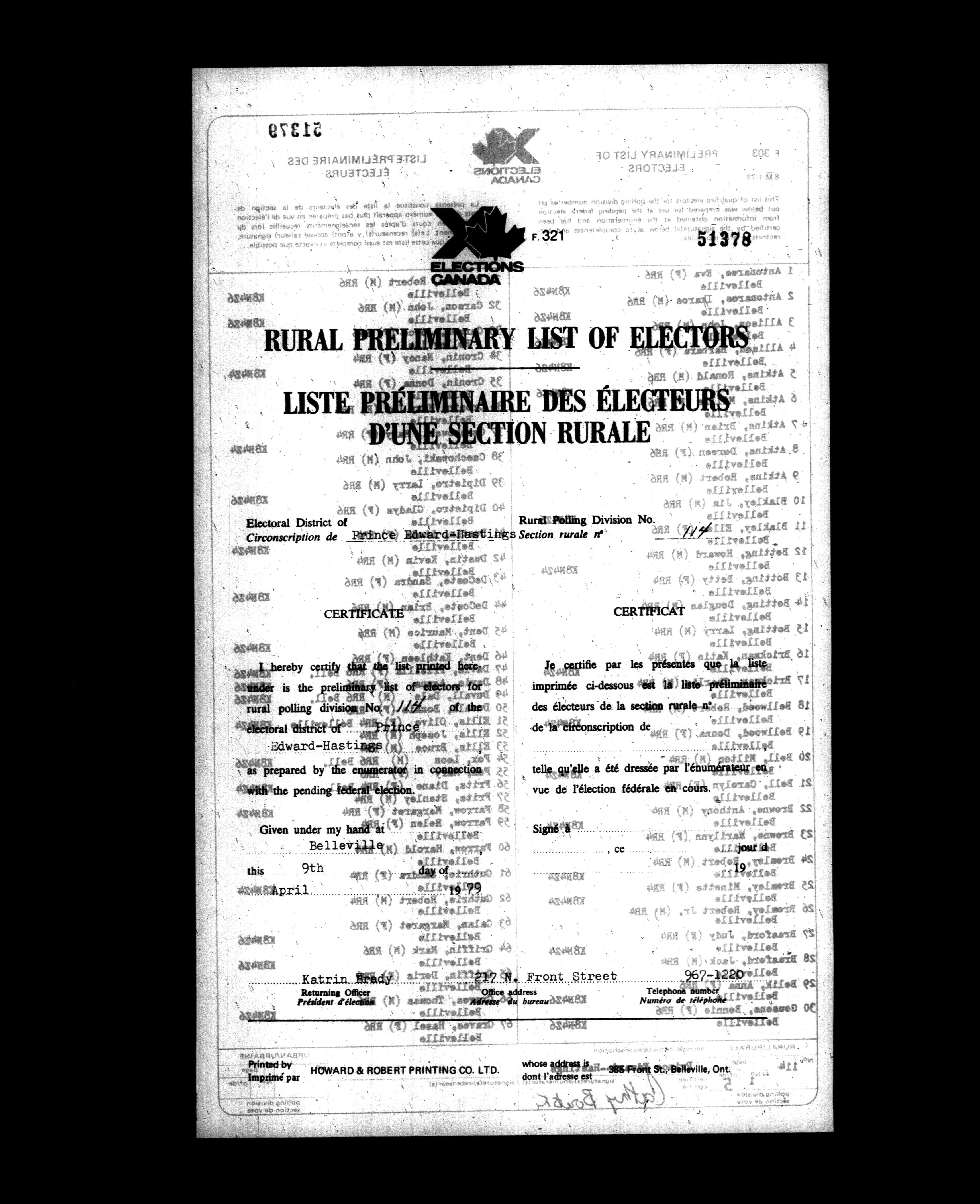 Voters' lists Ontario, 1979 - 582