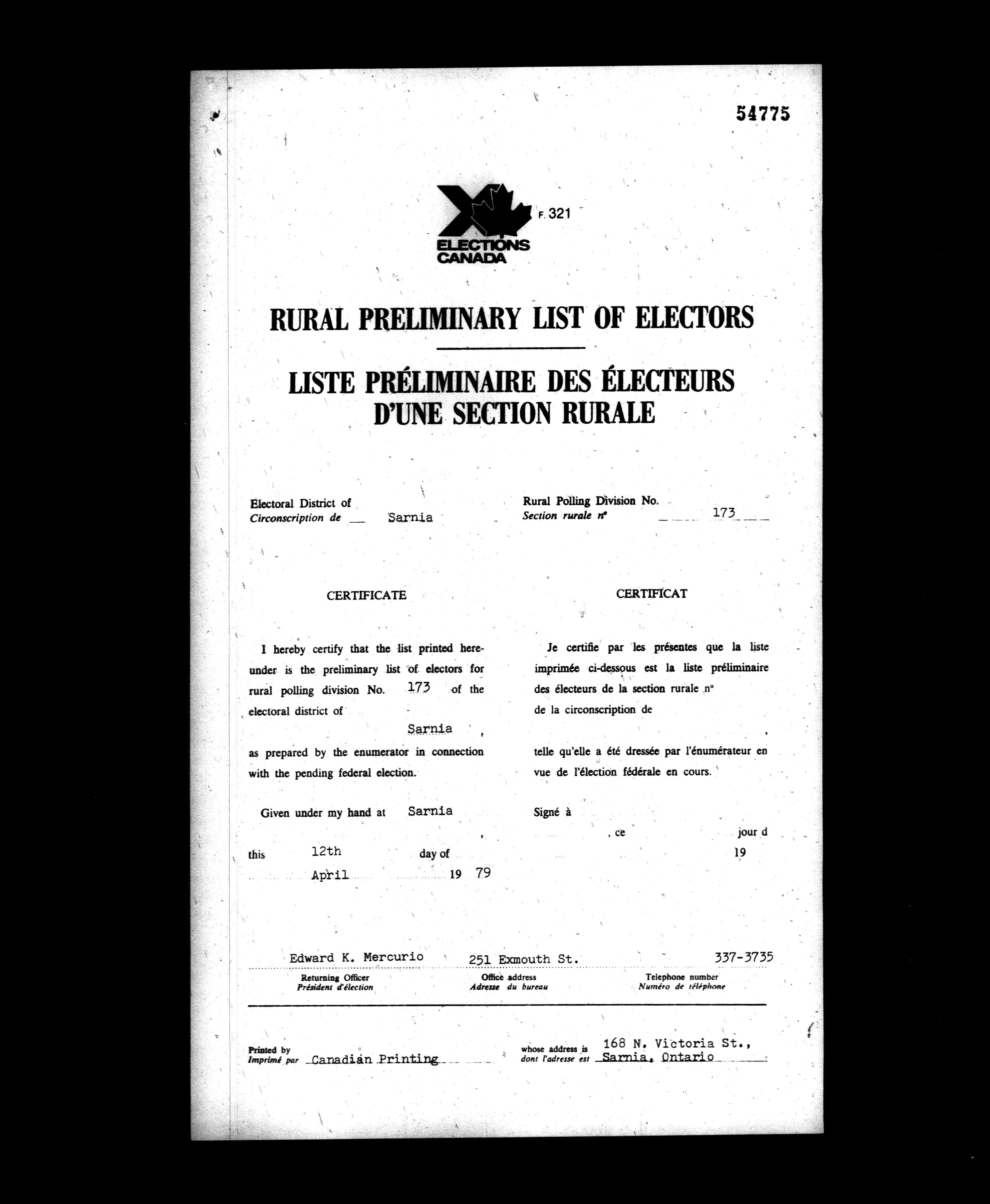 Office of the Chief Electoral Officer : Preliminary List of Electors : T-584