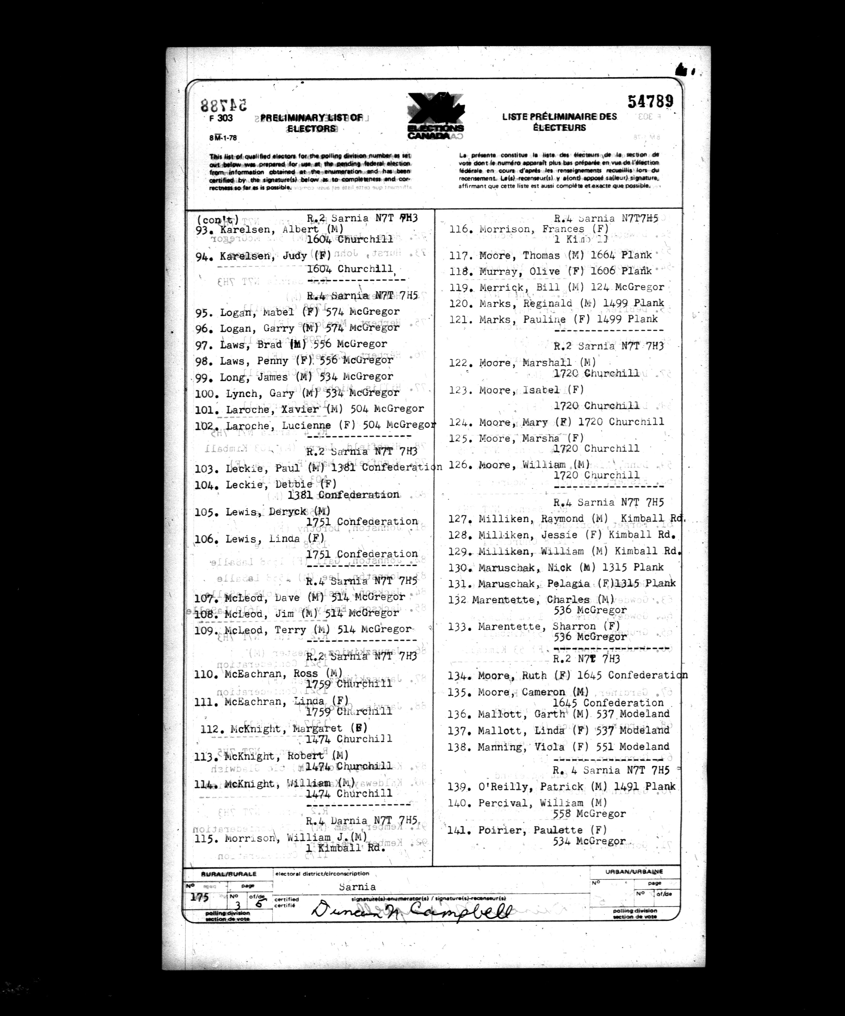 Office of the Chief Electoral Officer : Preliminary List of Electors : T-584
