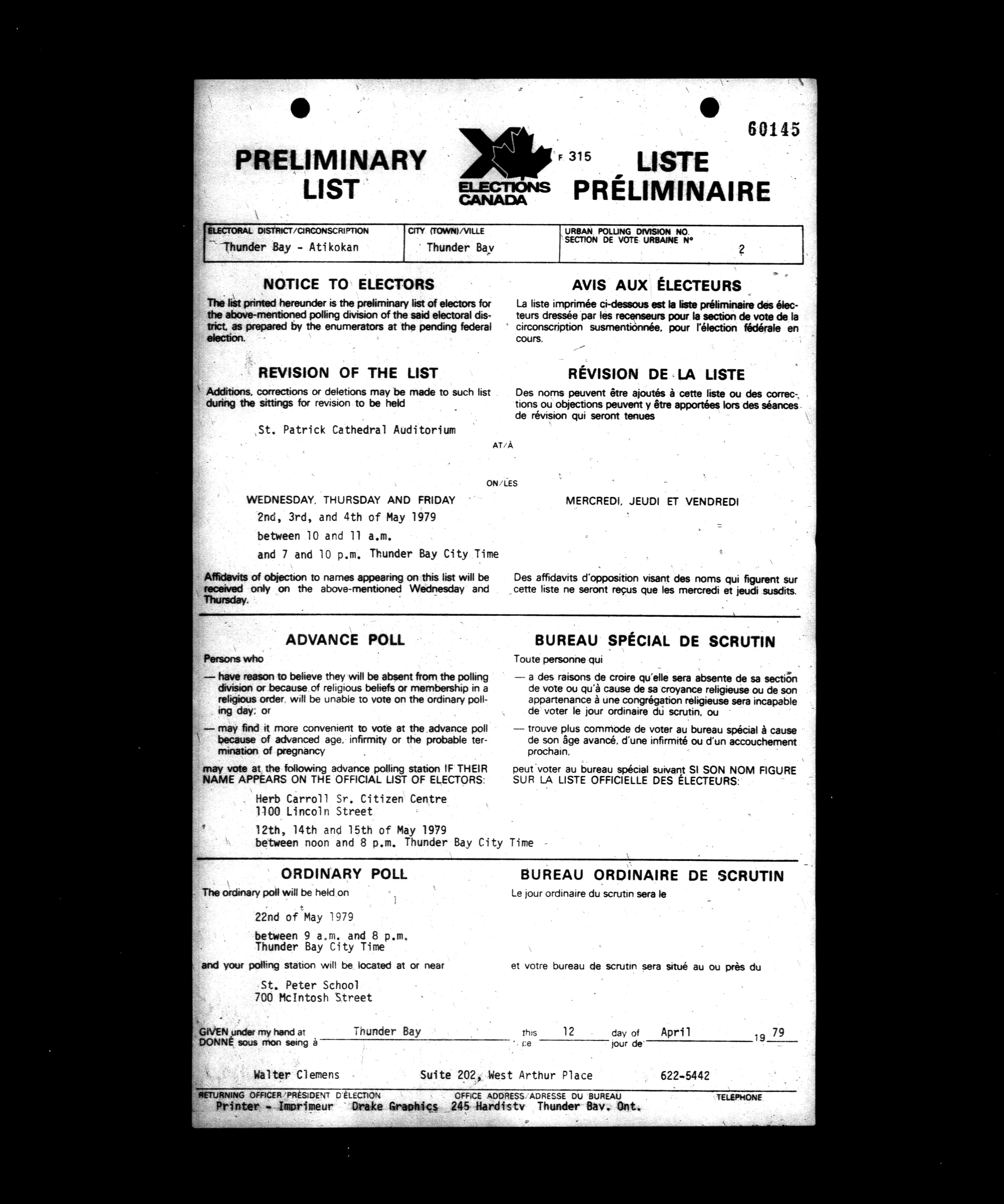 Office of the Chief Electoral Officer : Preliminary List of Electors : T-587