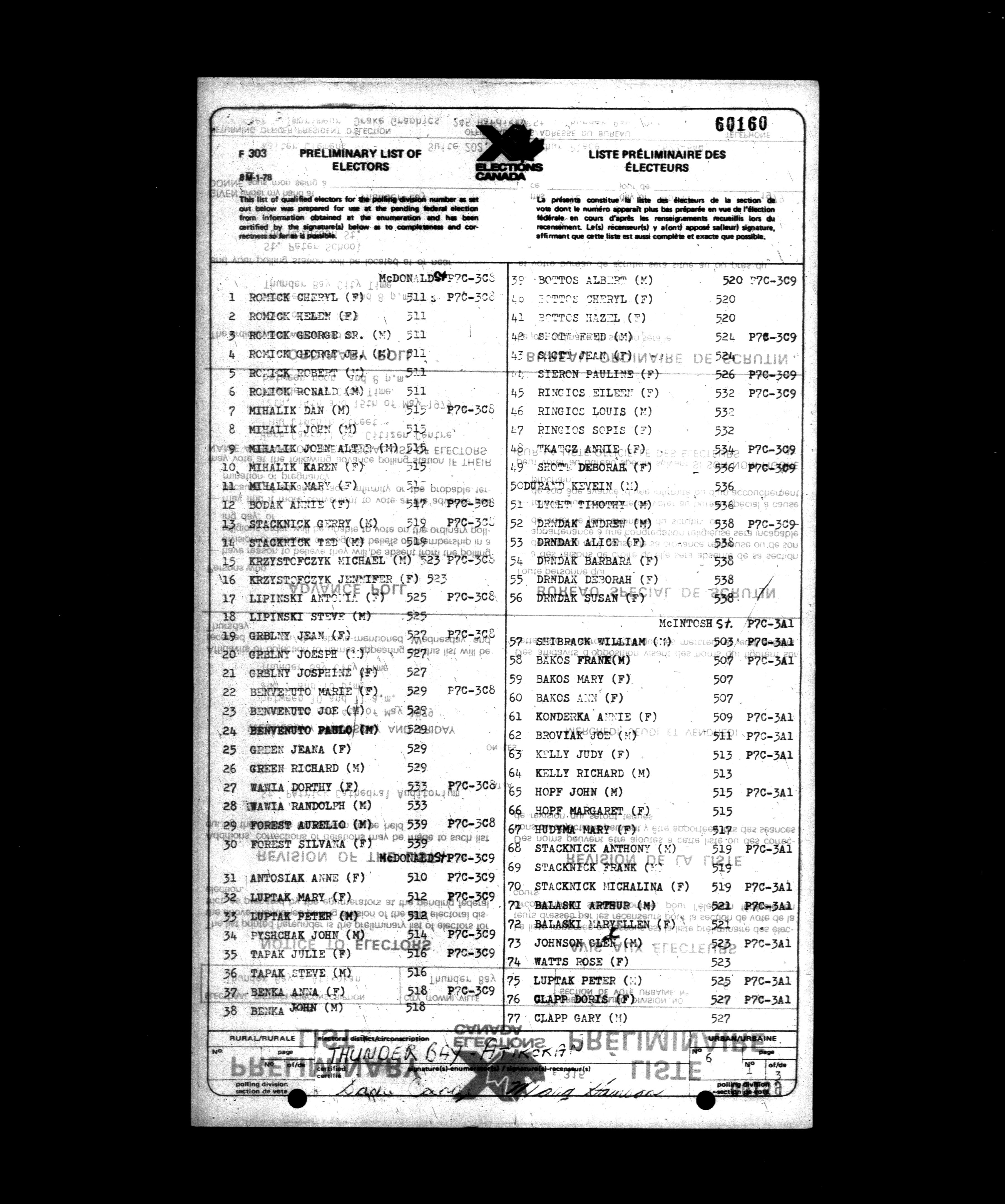 Office of the Chief Electoral Officer : Preliminary List of Electors : T-587