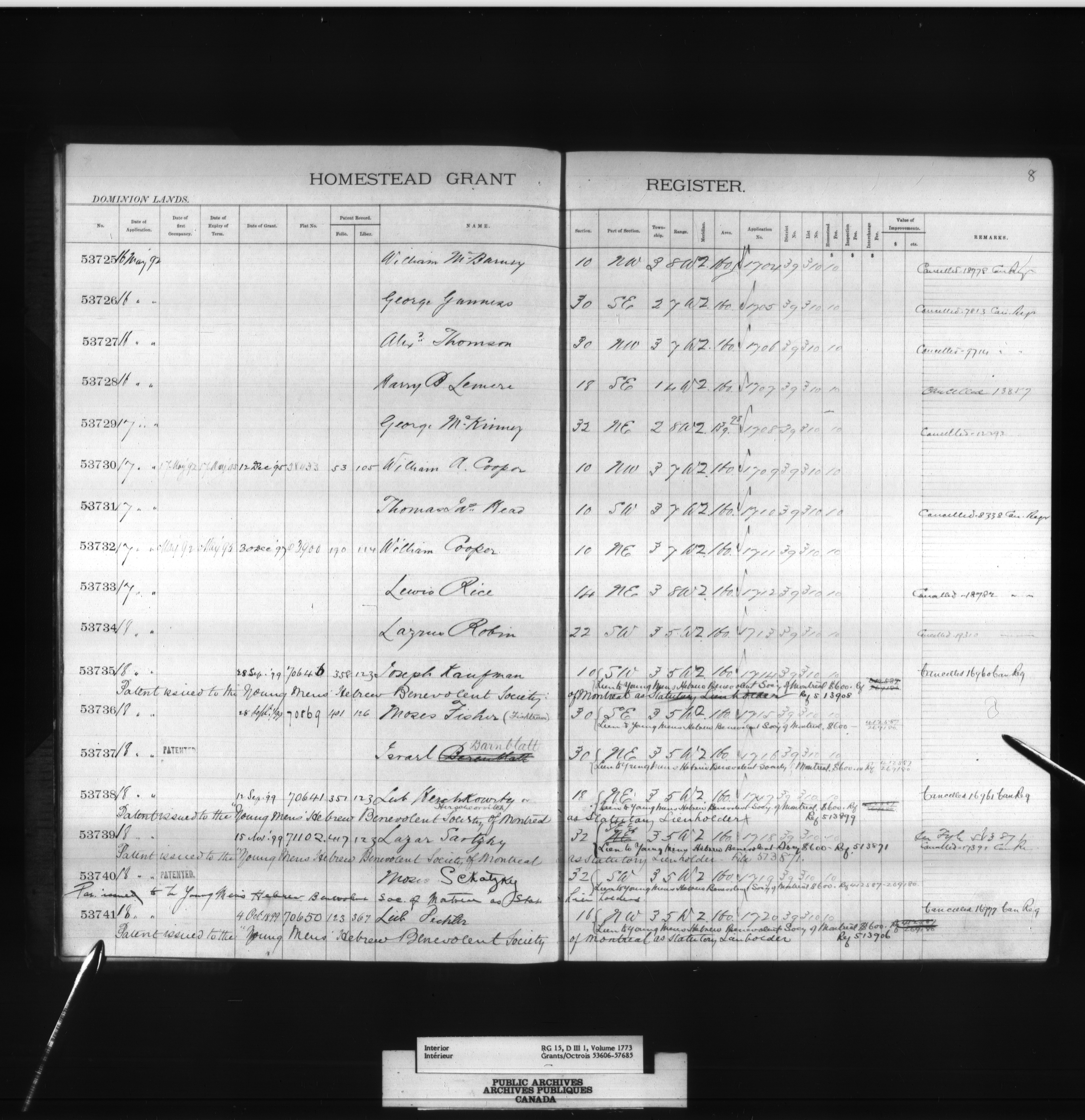 Homestead grant registers - 6