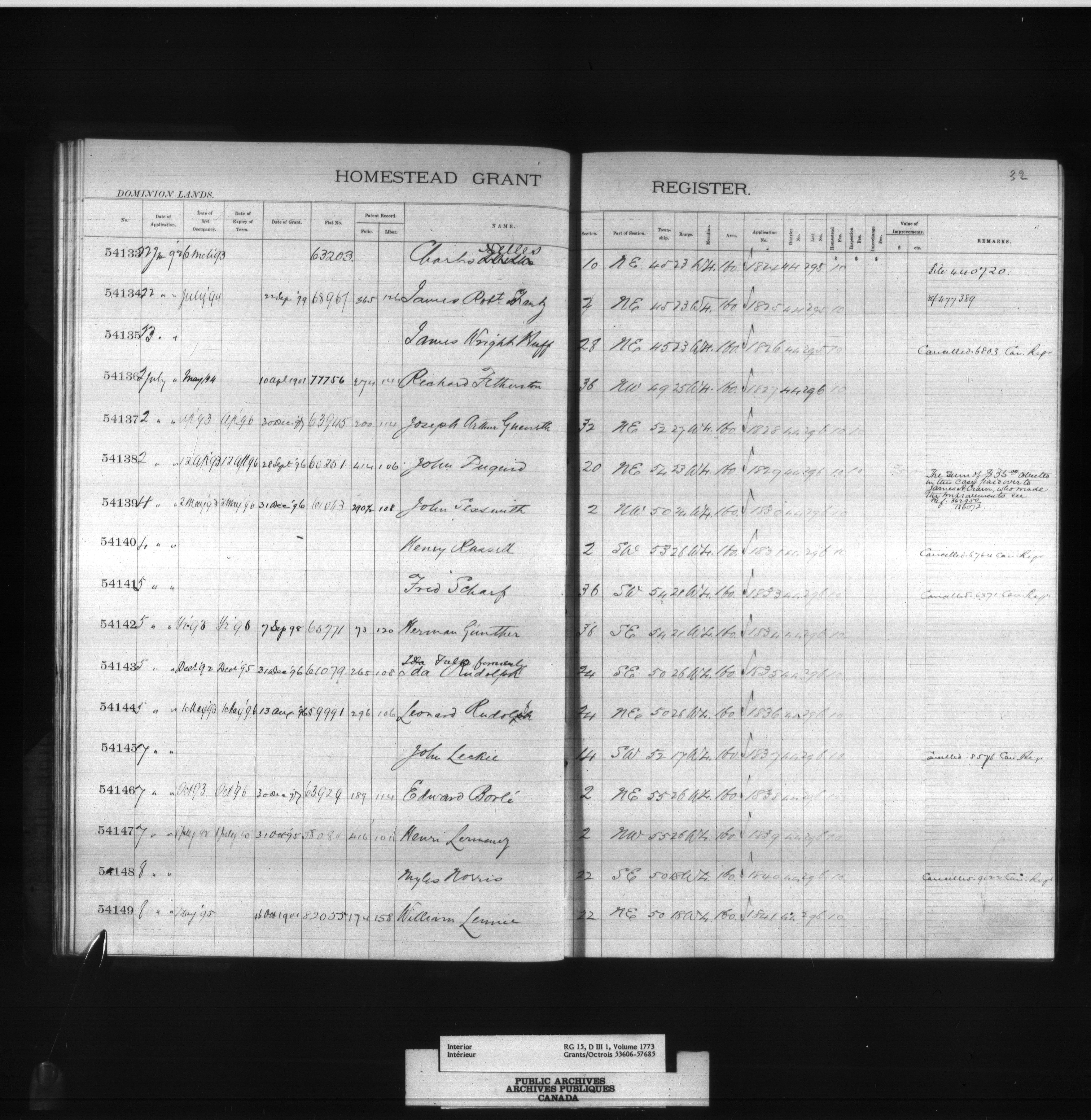 Homestead grant registers - 6