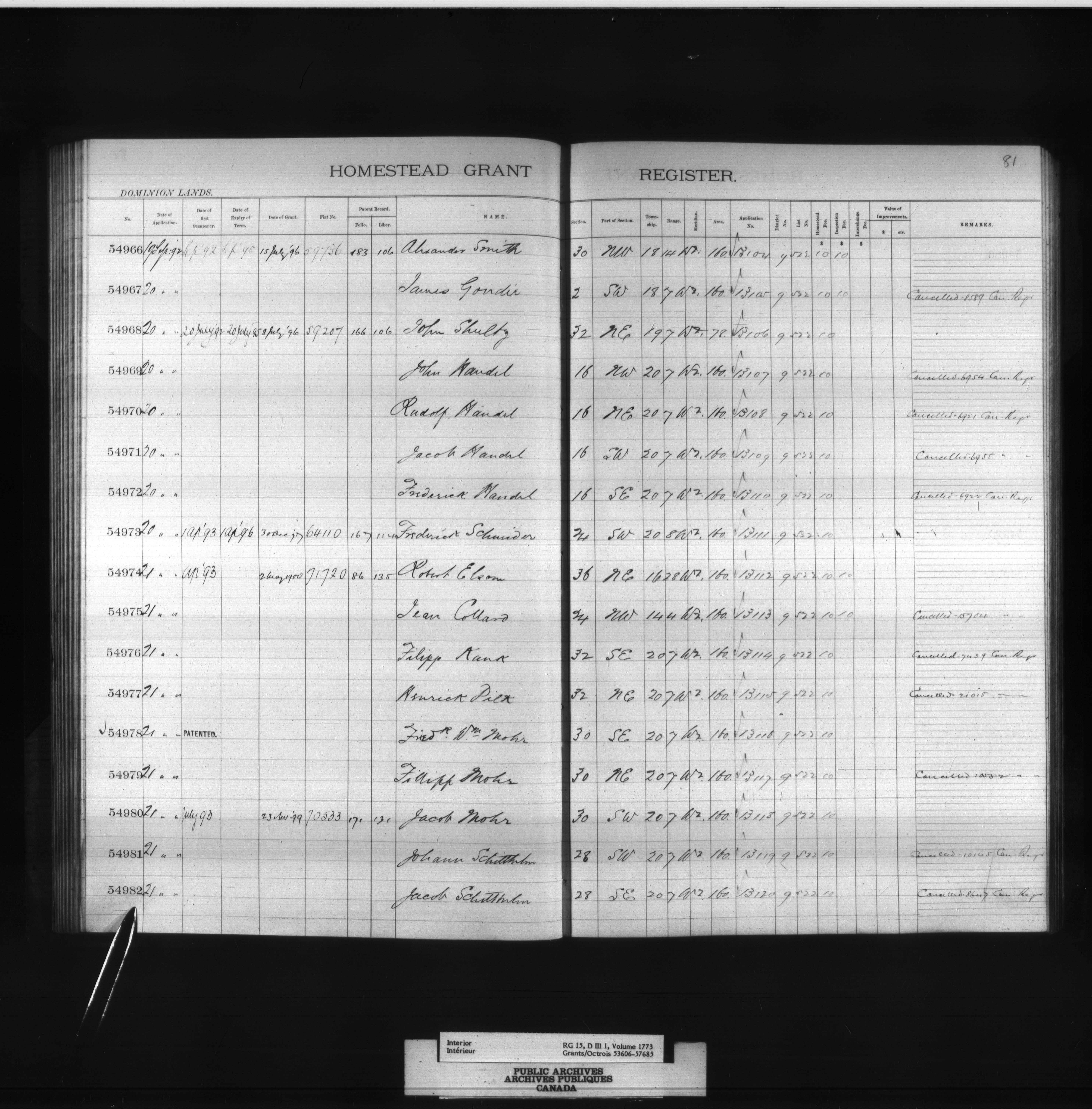 Homestead grant registers - 6