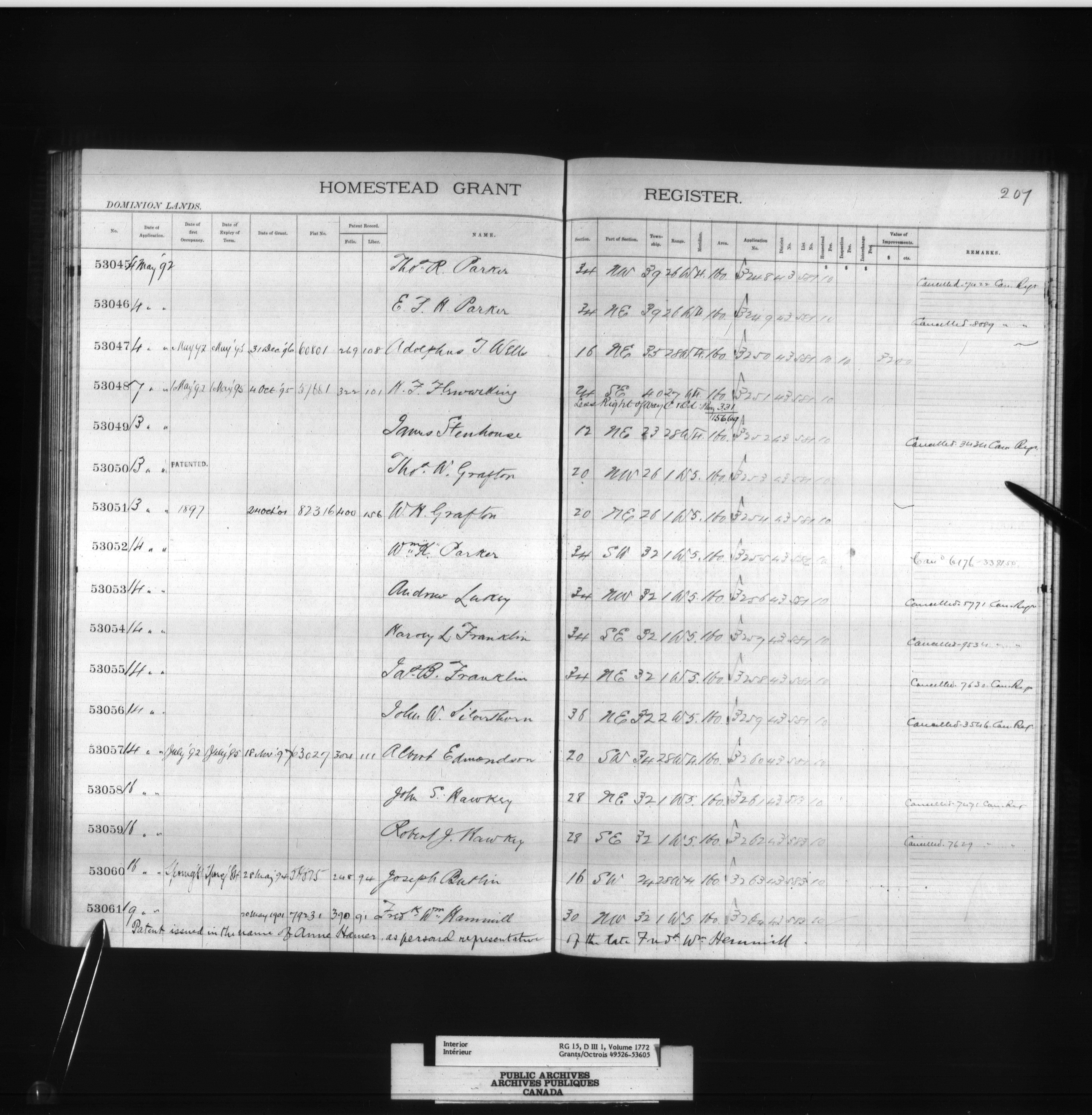 Homestead grant registers - 6