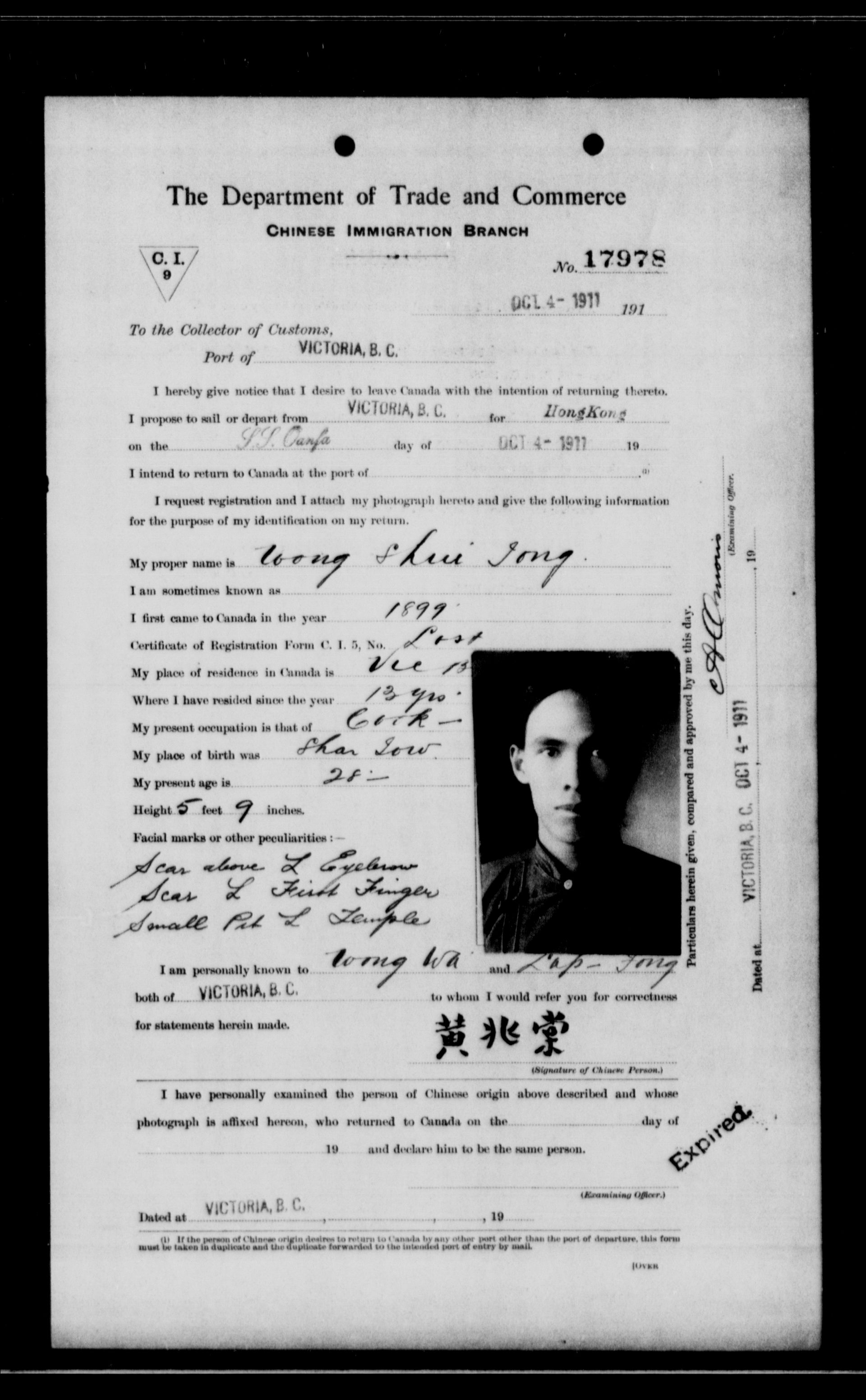 Chinese immigration records : C.I.9 certificates from Victoria : Sept. 1910-Oct. 1911 - 6038