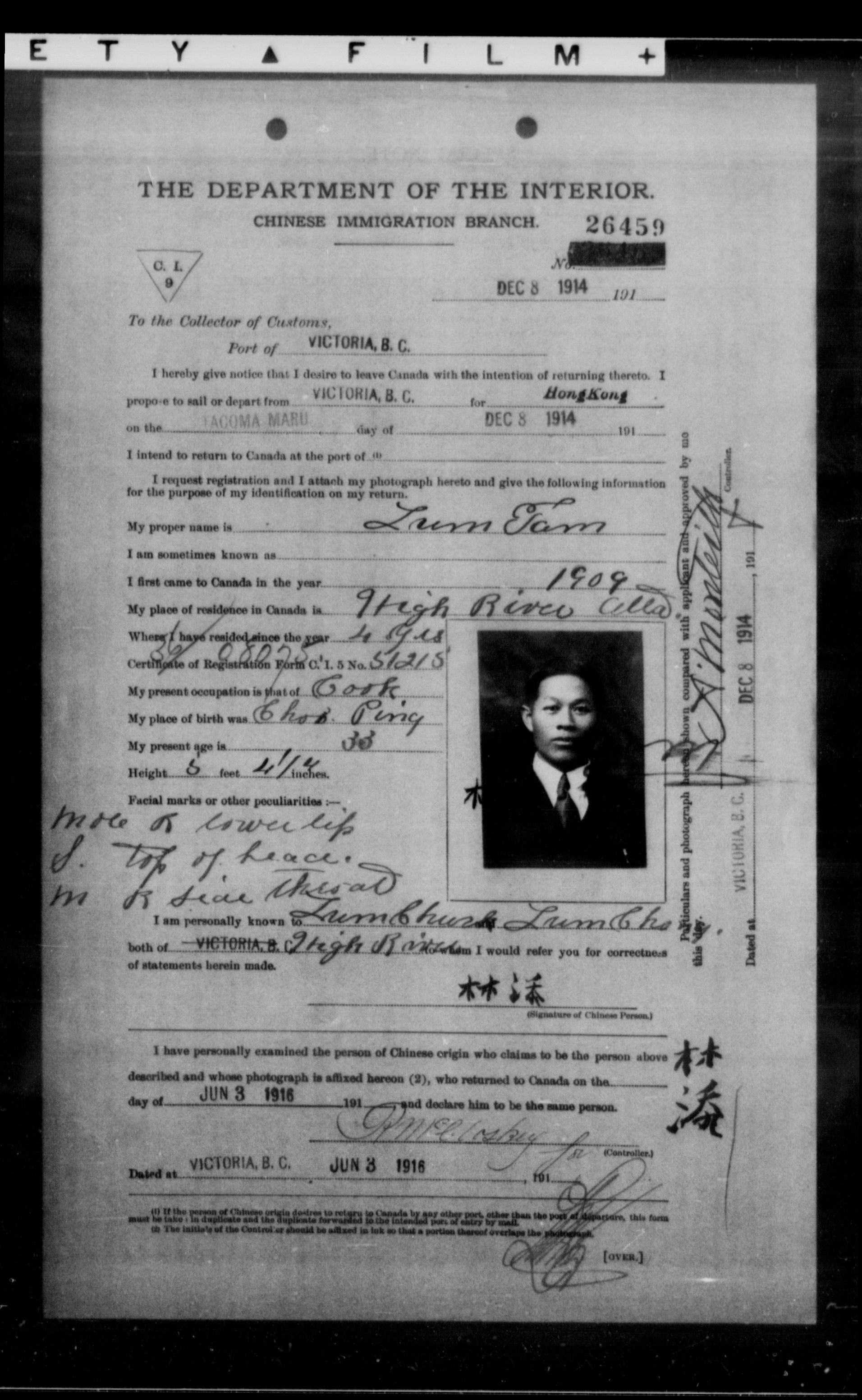 Chinese immigration records : C.I.9 certificates from Victoria: Mar. 1914-Dec. 1914 - 6041
