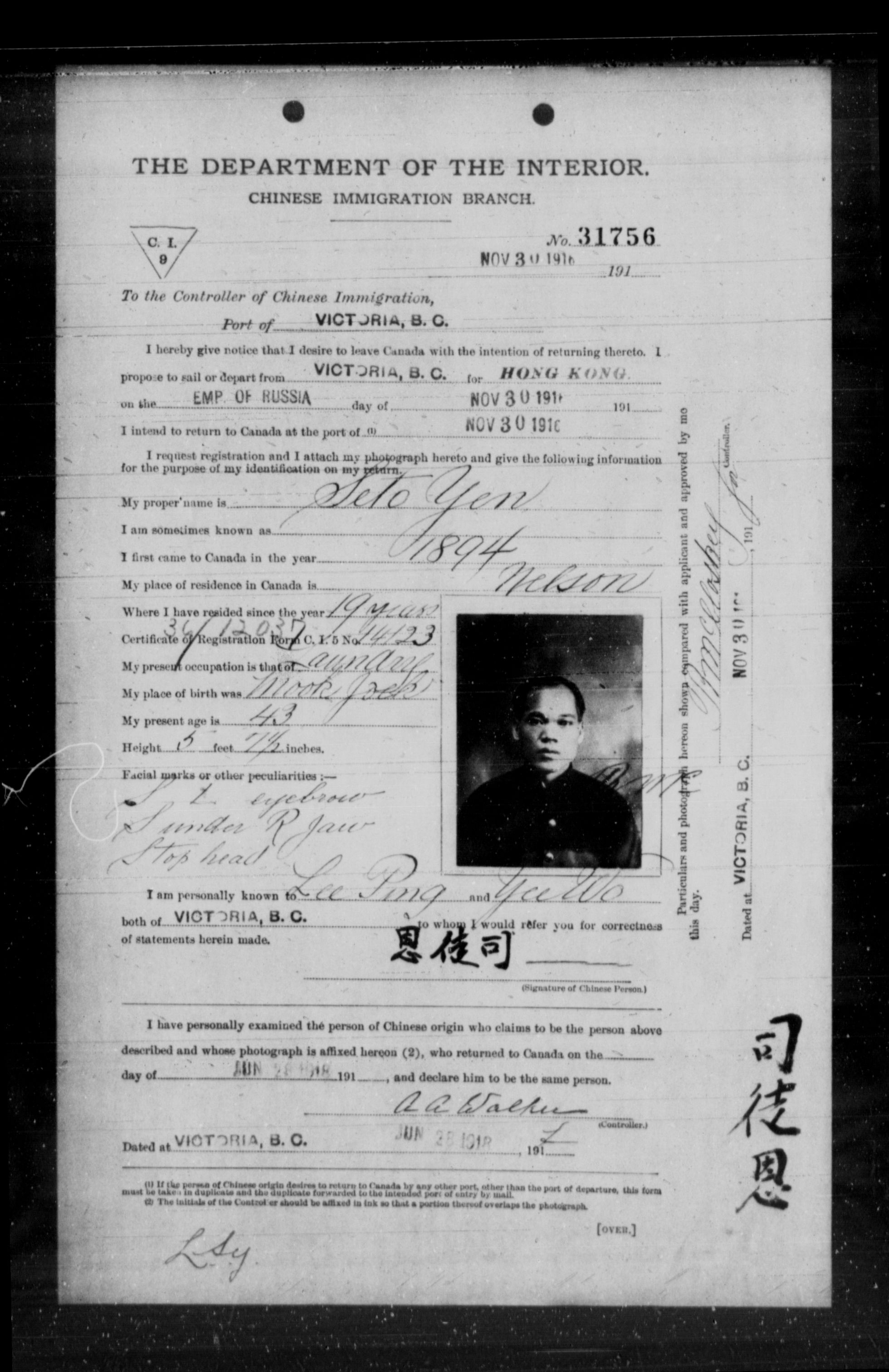 Chinese immigration records : C.I.9 certificates from Vancouver and Victoria : T-6044