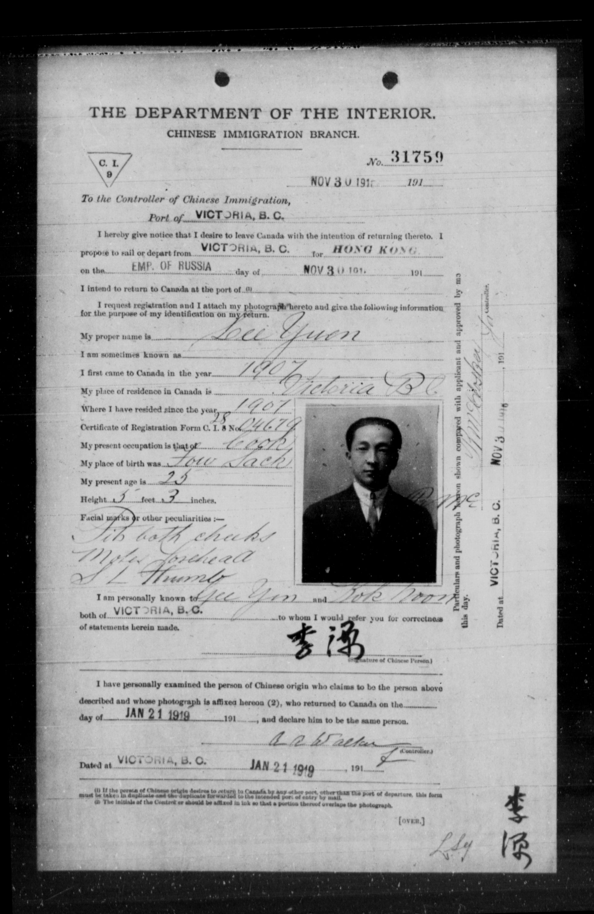 Chinese immigration records : C.I.9 certificates from Vancouver and Victoria : T-6044