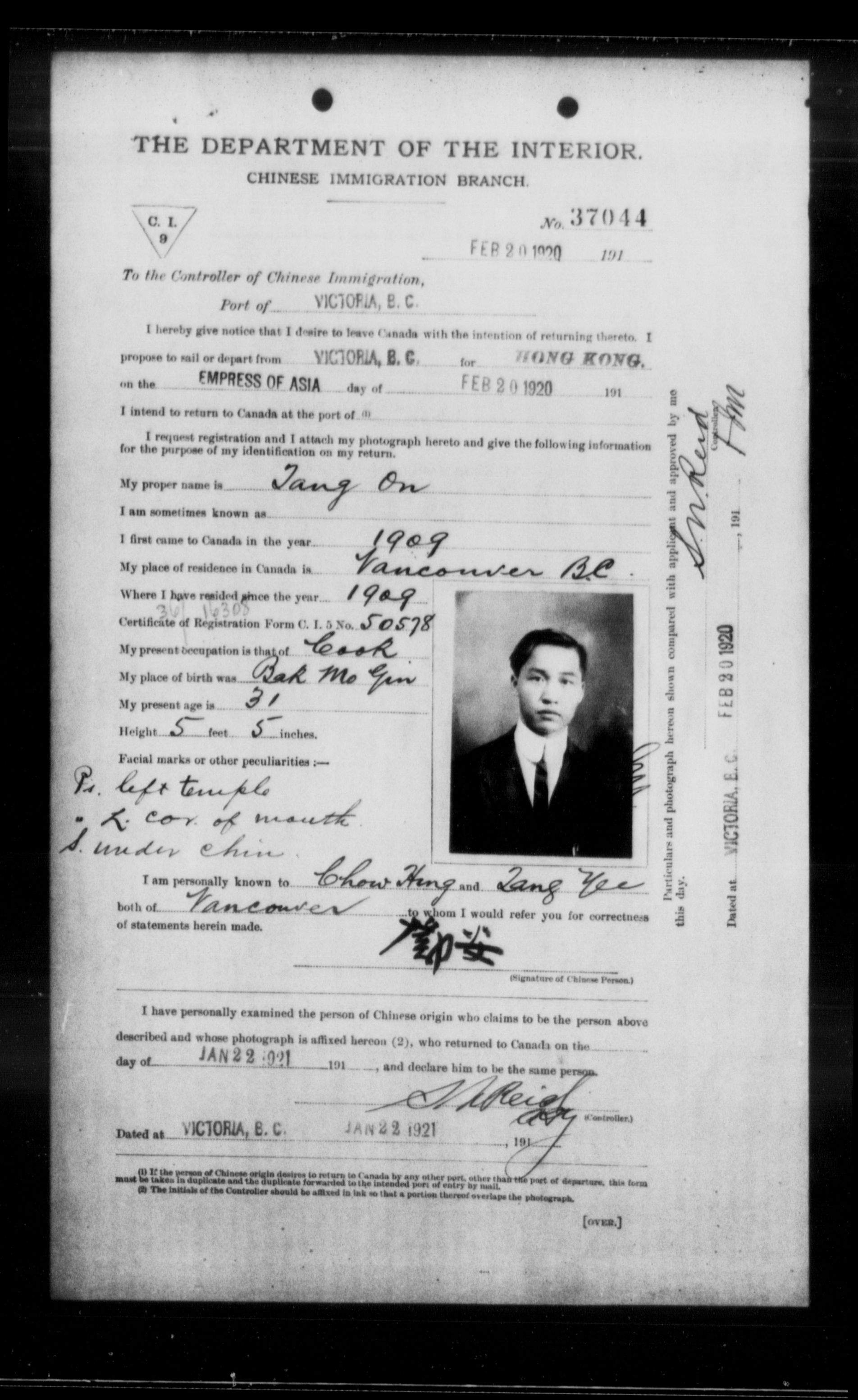 Chinese immigration records : C.I.9 certificates from Vancouver and Victoria : T-6045