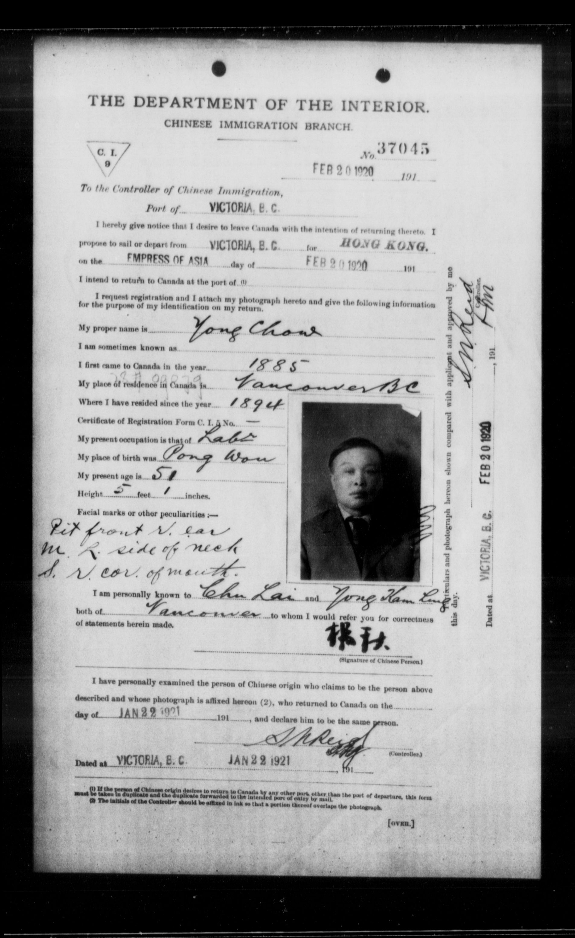 Chinese immigration records : C.I.9 certificates from Vancouver and Victoria : T-6045