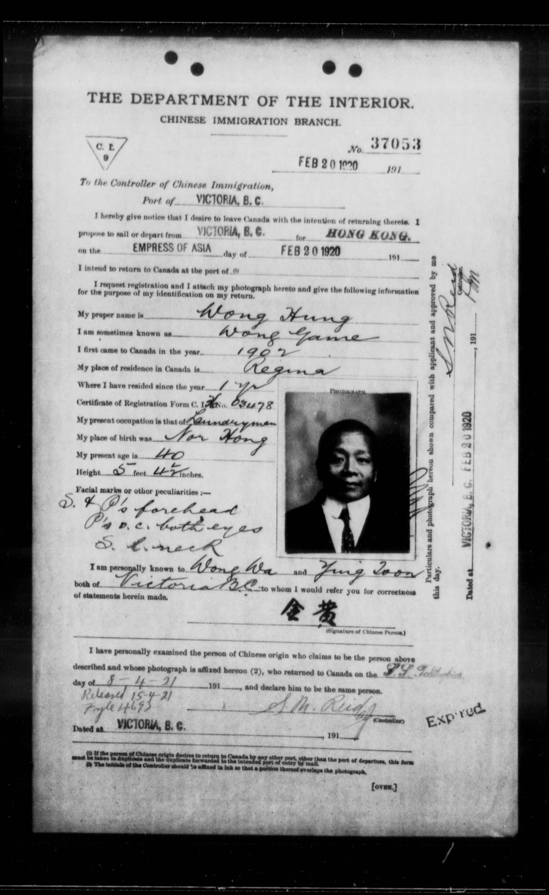 Chinese immigration records : C.I.9 certificates from Vancouver and Victoria : T-6045
