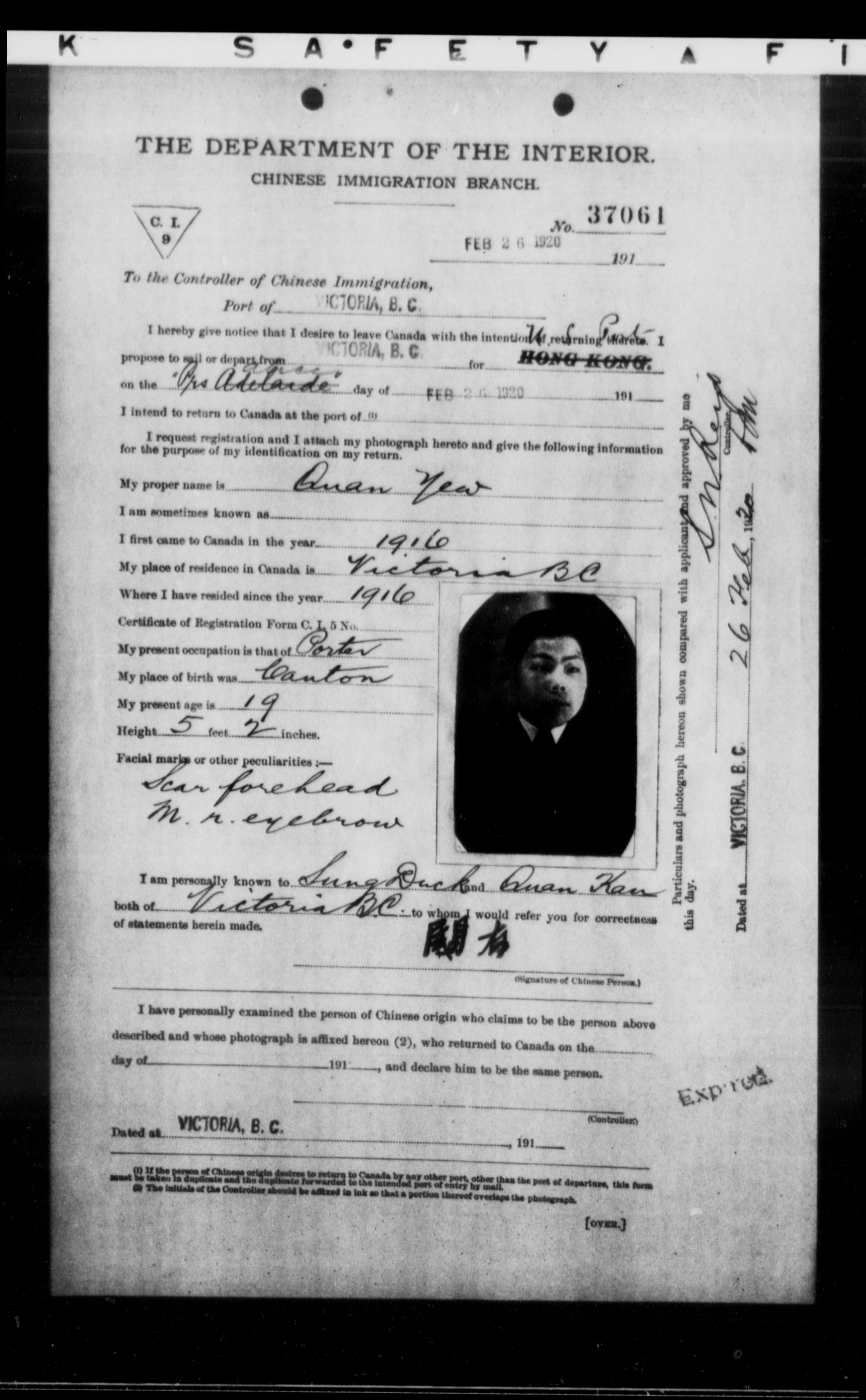 Chinese immigration records : C.I.9 certificates from Vancouver and Victoria : T-6045