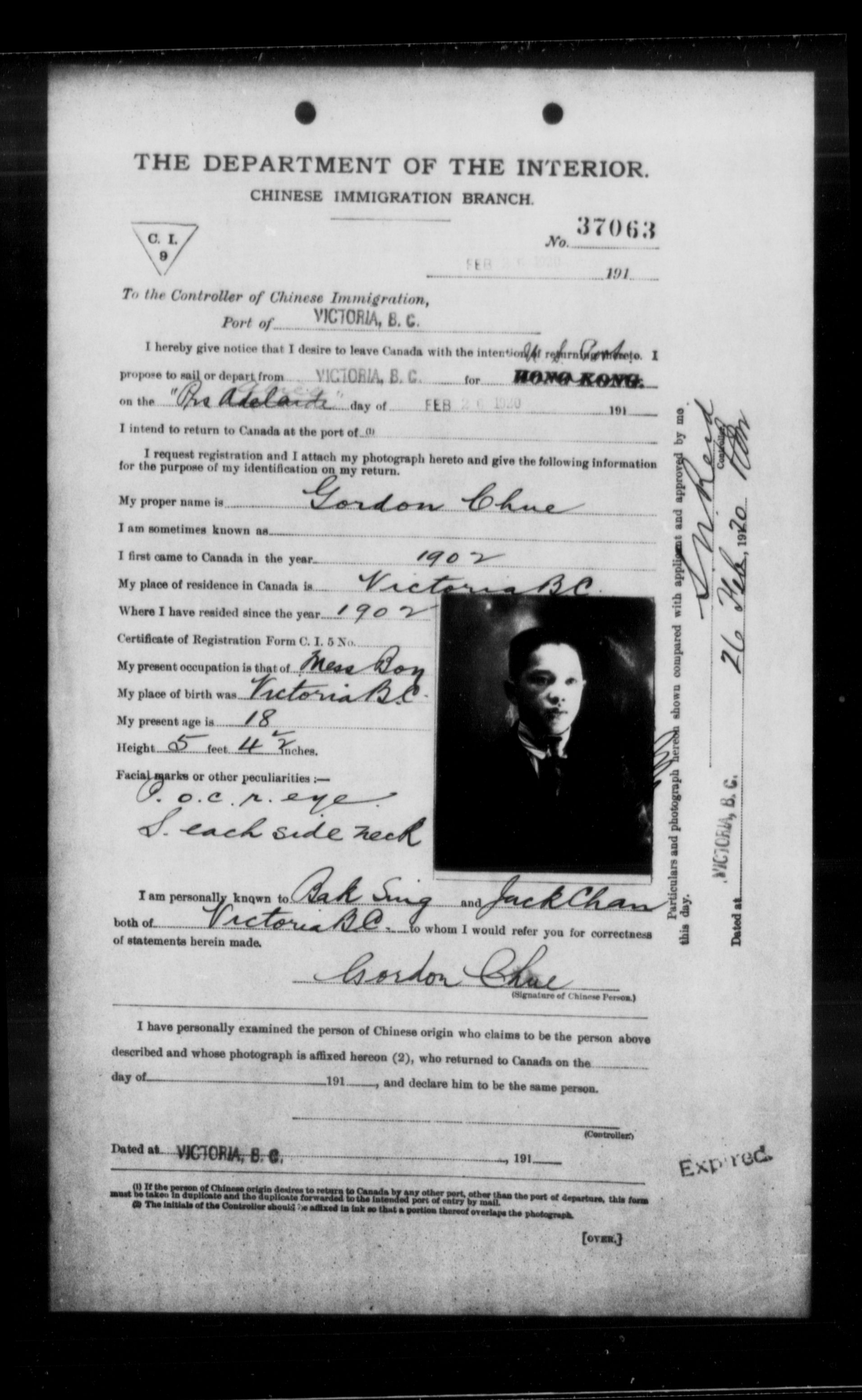 Chinese immigration records : C.I.9 certificates from Vancouver and Victoria : T-6045