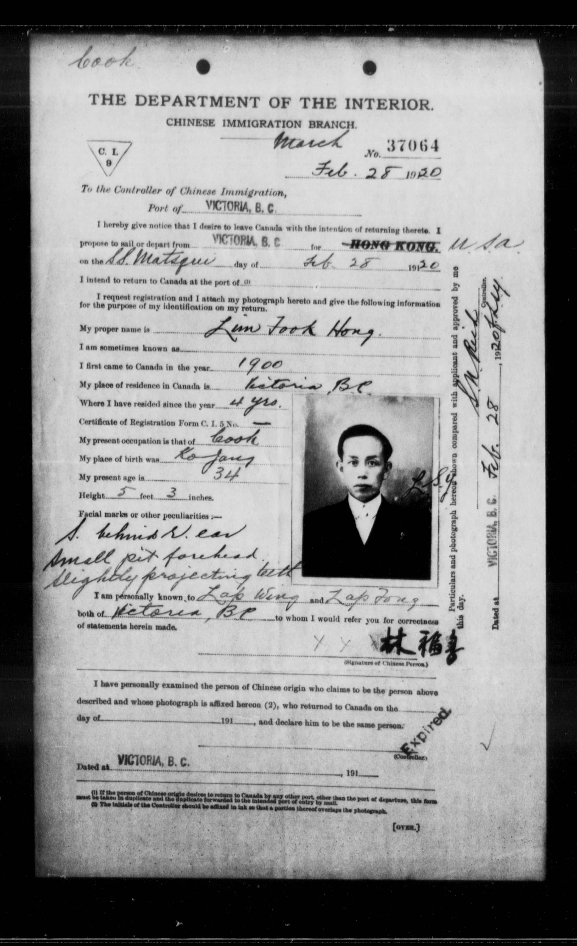 Chinese immigration records : C.I.9 certificates from Vancouver and Victoria : T-6045