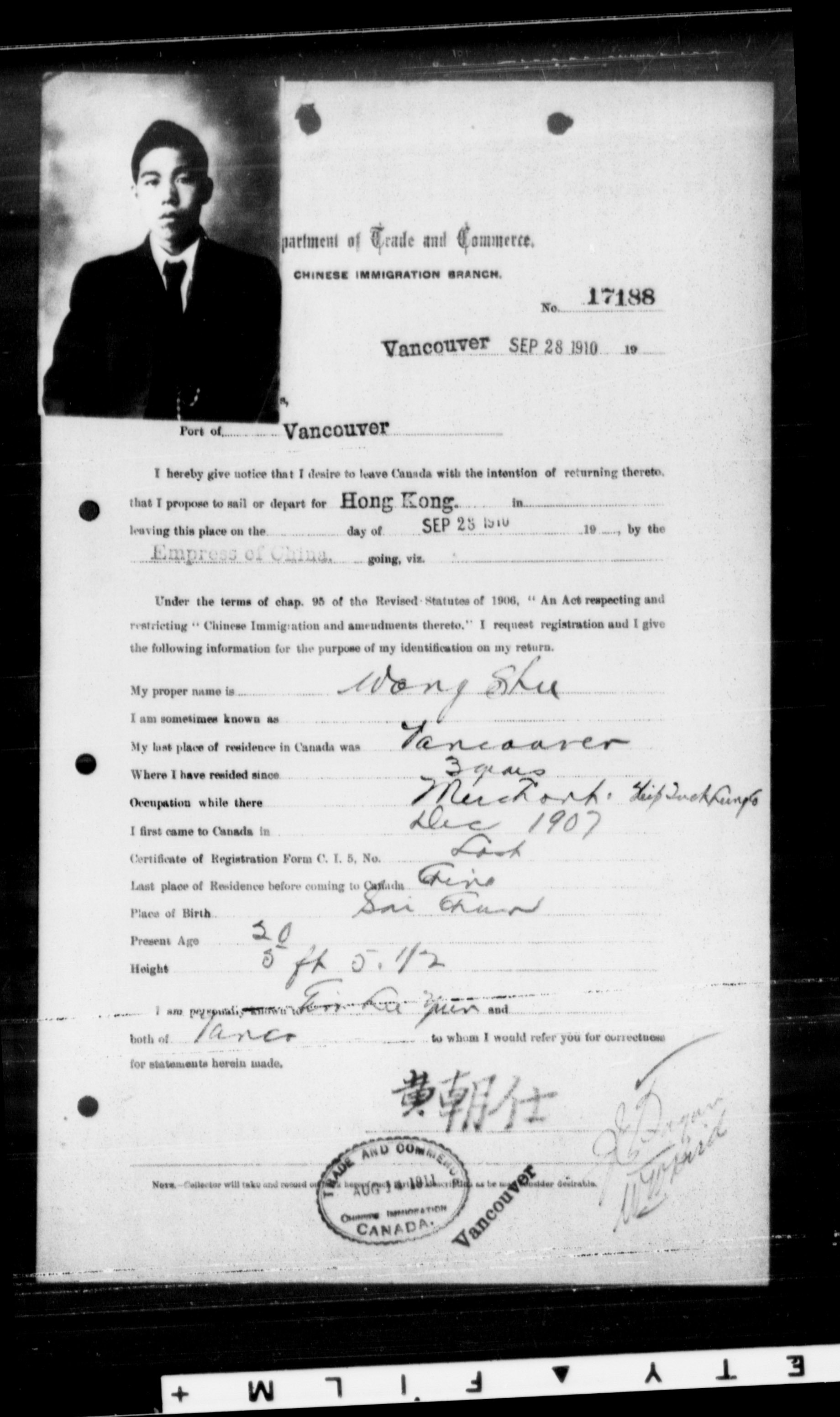 Chinese immigration records : C.I.9 certificates from Vancouver : Sept. 1910-Jan. 1912 - 6047