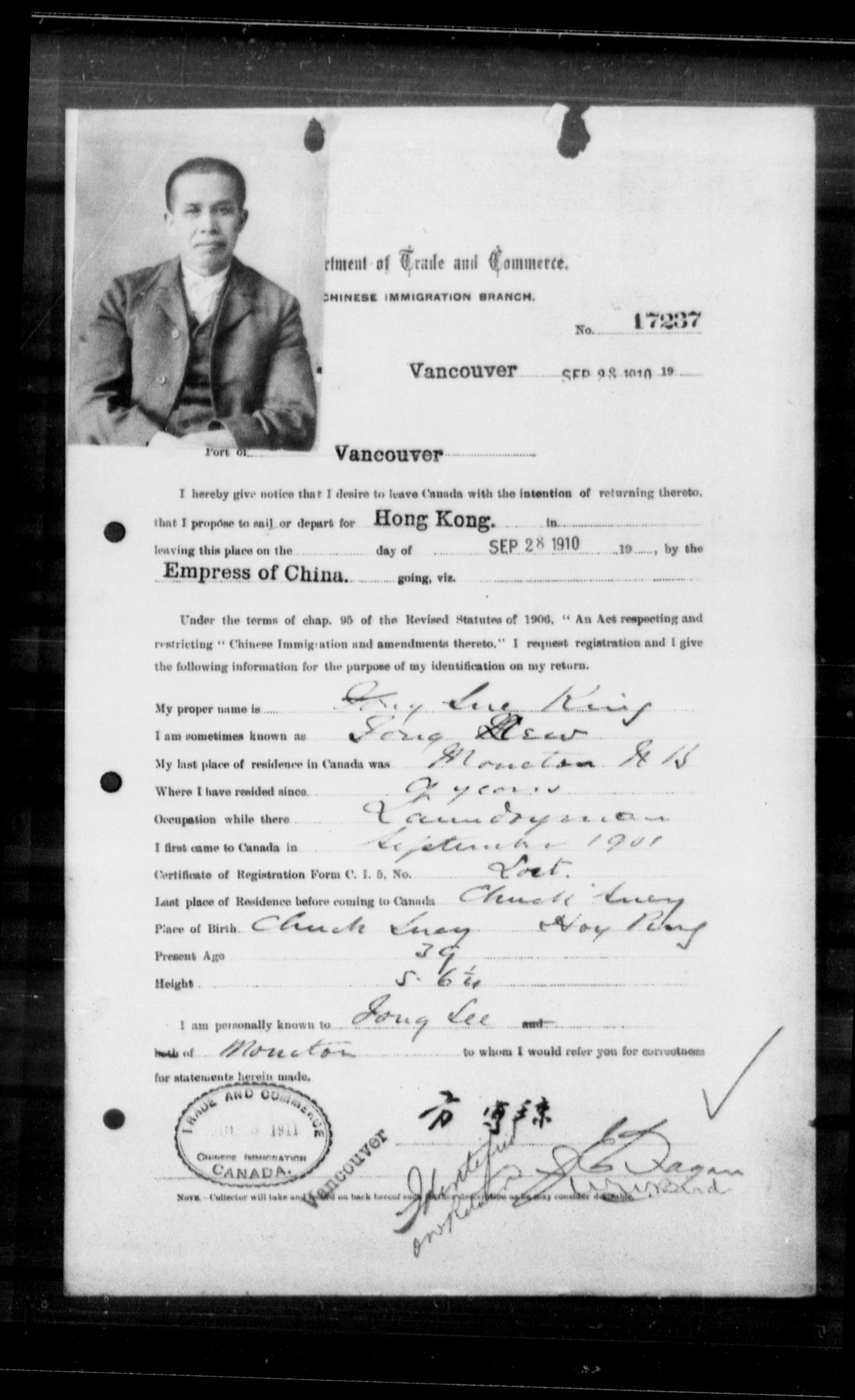 Chinese immigration records : C.I.9 certificates from Vancouver : Sept. 1910-Jan. 1912 - 6047