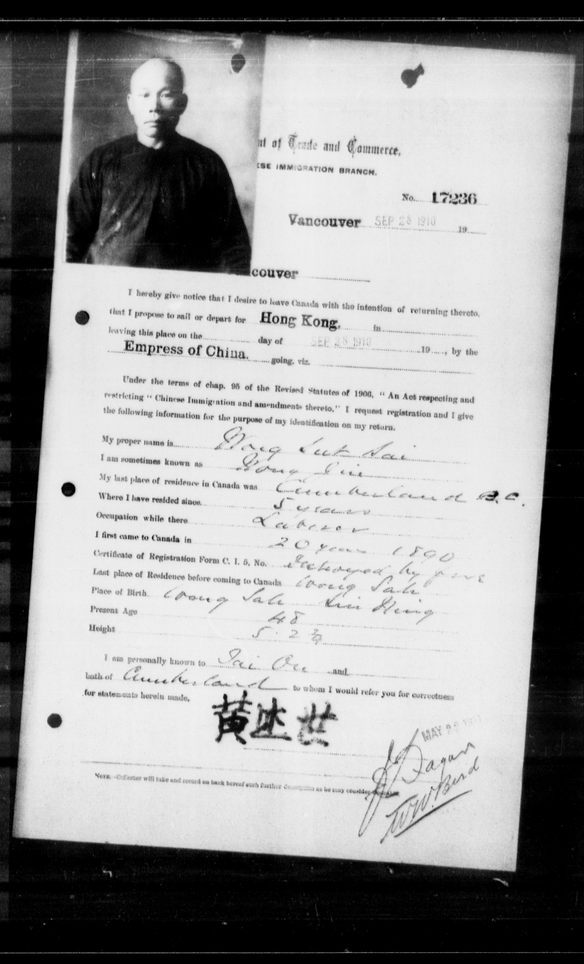 Chinese immigration records : C.I.9 certificates from Vancouver and Victoria : T-6047
