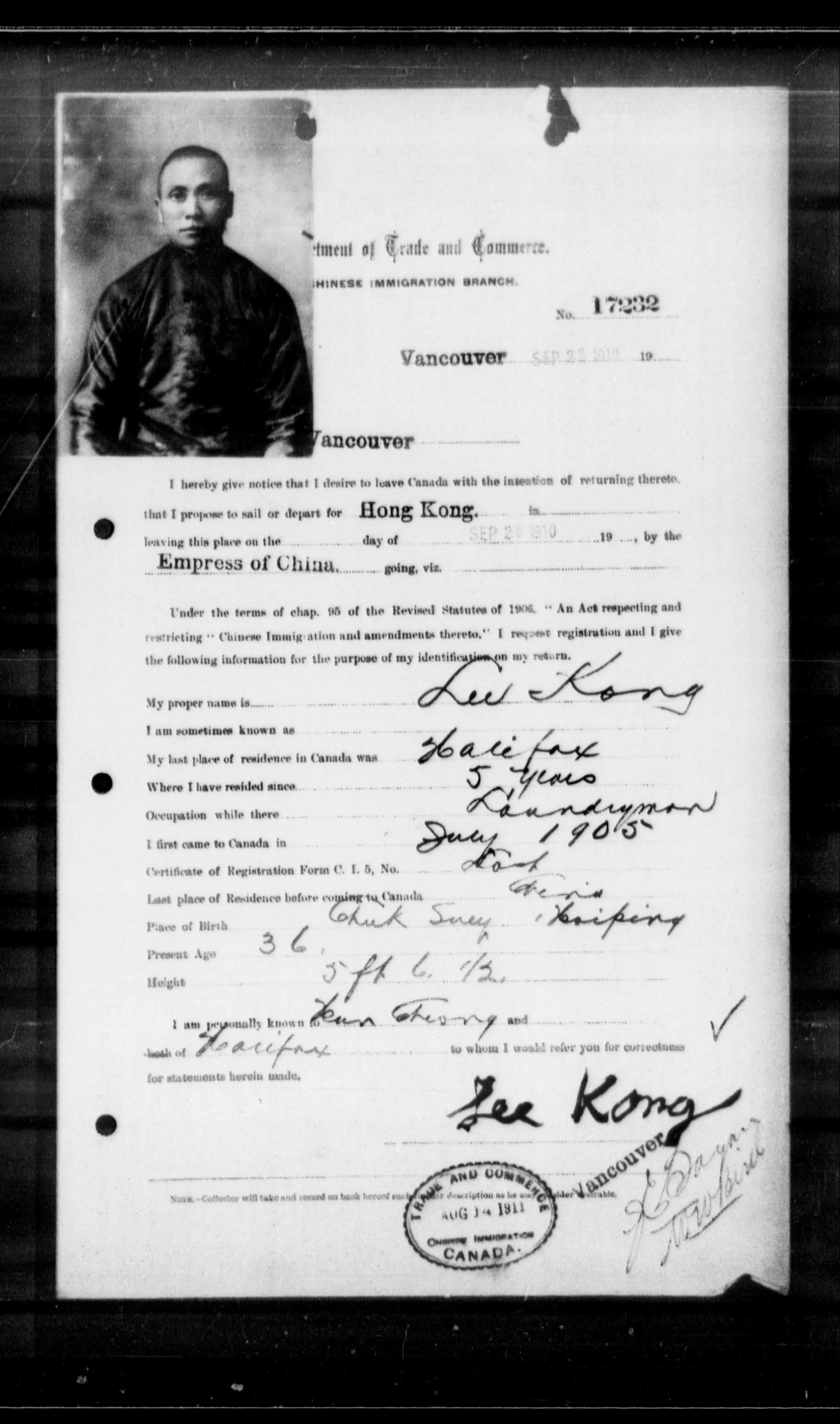 Chinese immigration records : C.I.9 certificates from Vancouver : Sept. 1910-Jan. 1912 - 6047