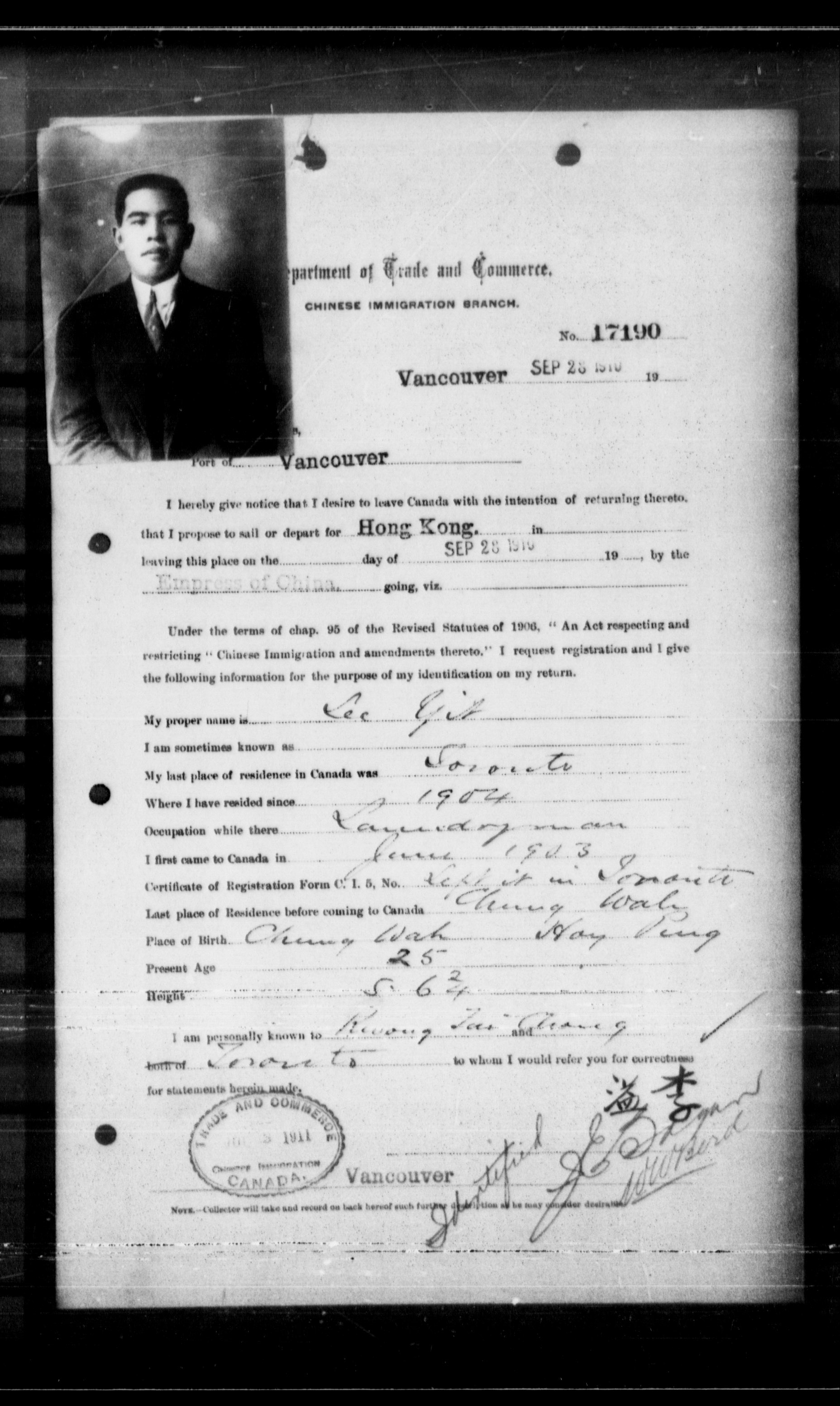 Chinese immigration records : C.I.9 certificates from Vancouver : Sept. 1910-Jan. 1912 - 6047