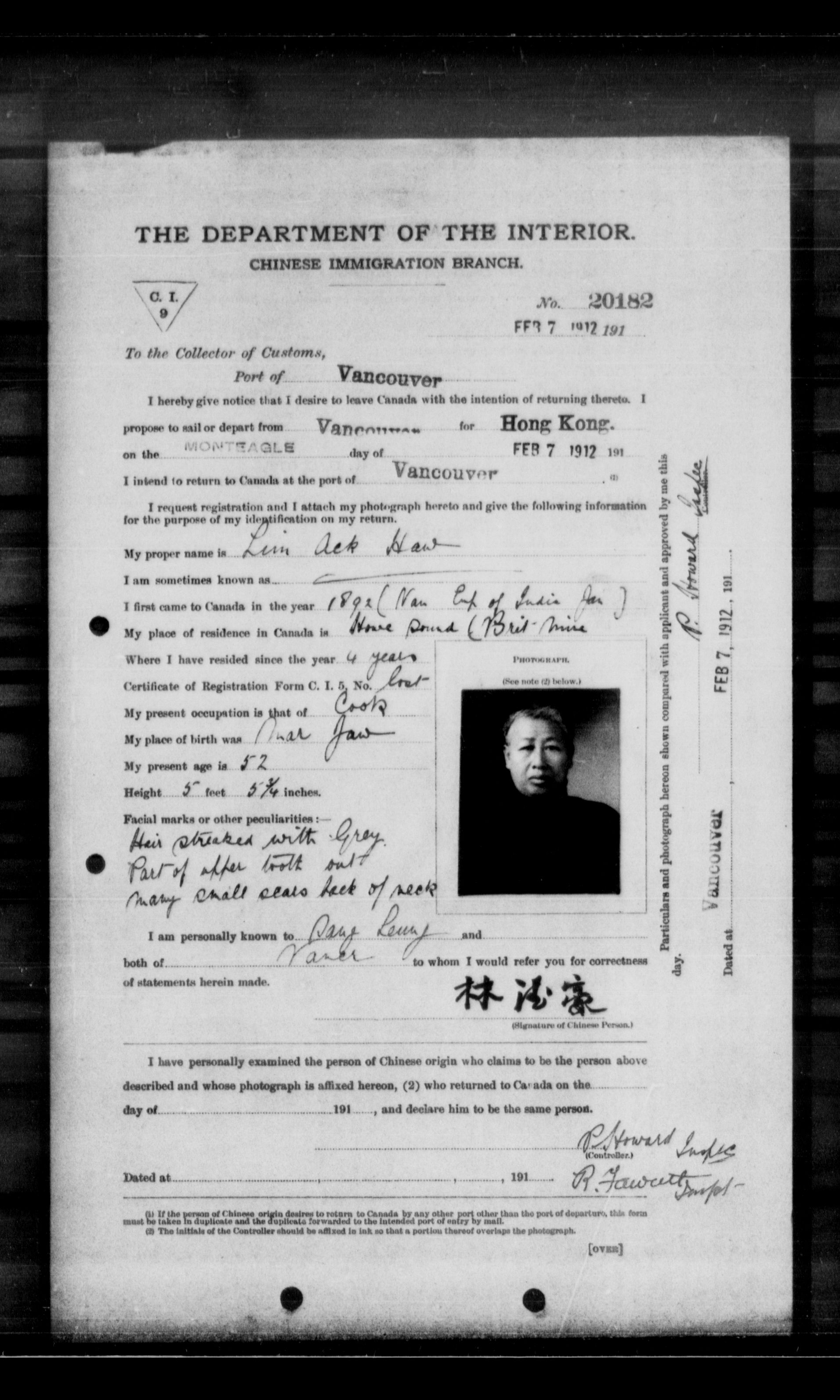 Chinese immigration records : C.I.9 certificates from Vancouver : Jan. 1911-Oct. 1913 - 6048