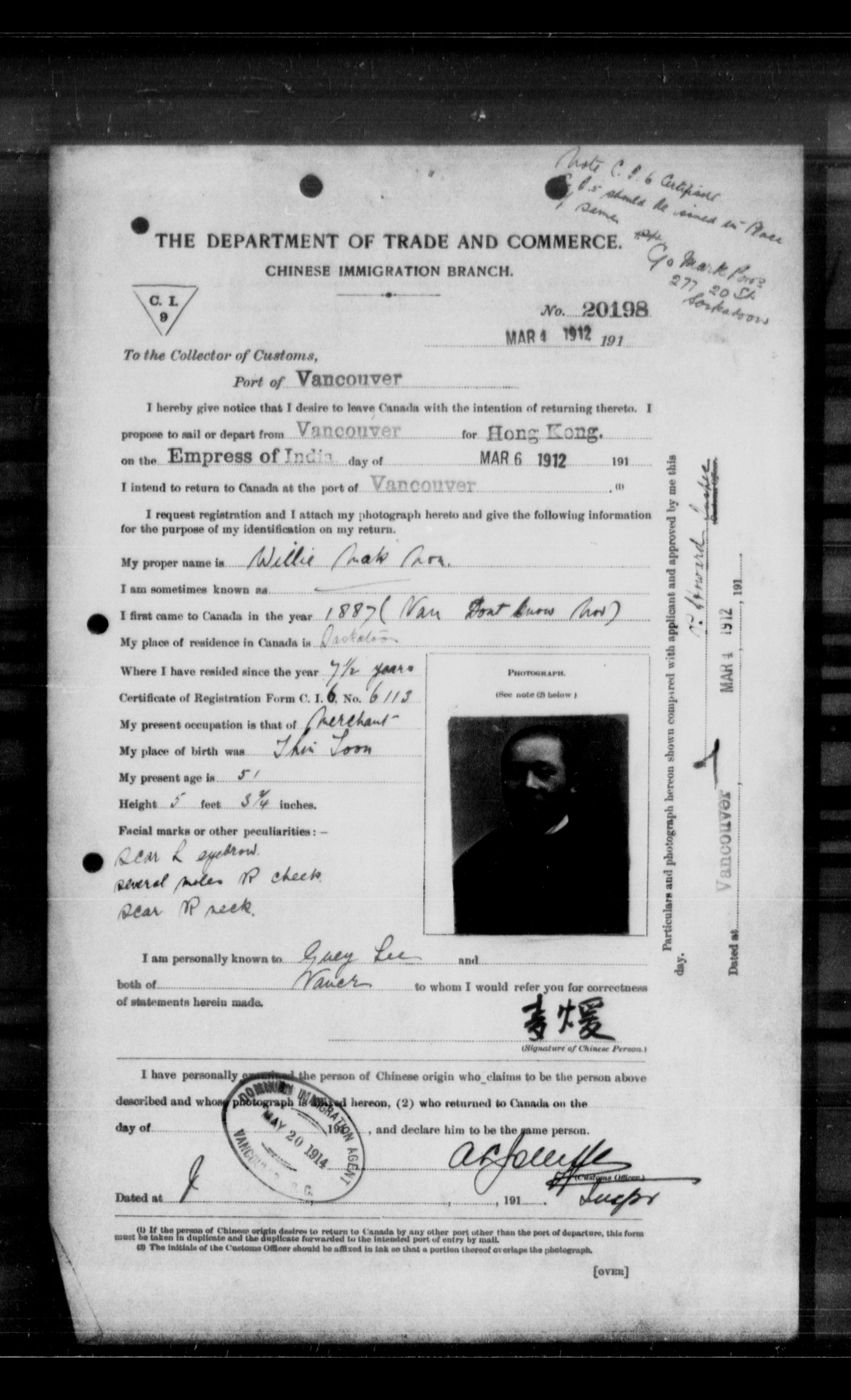 Chinese immigration records : C.I.9 certificates from Vancouver : Jan. 1911-Oct. 1913 - 6048