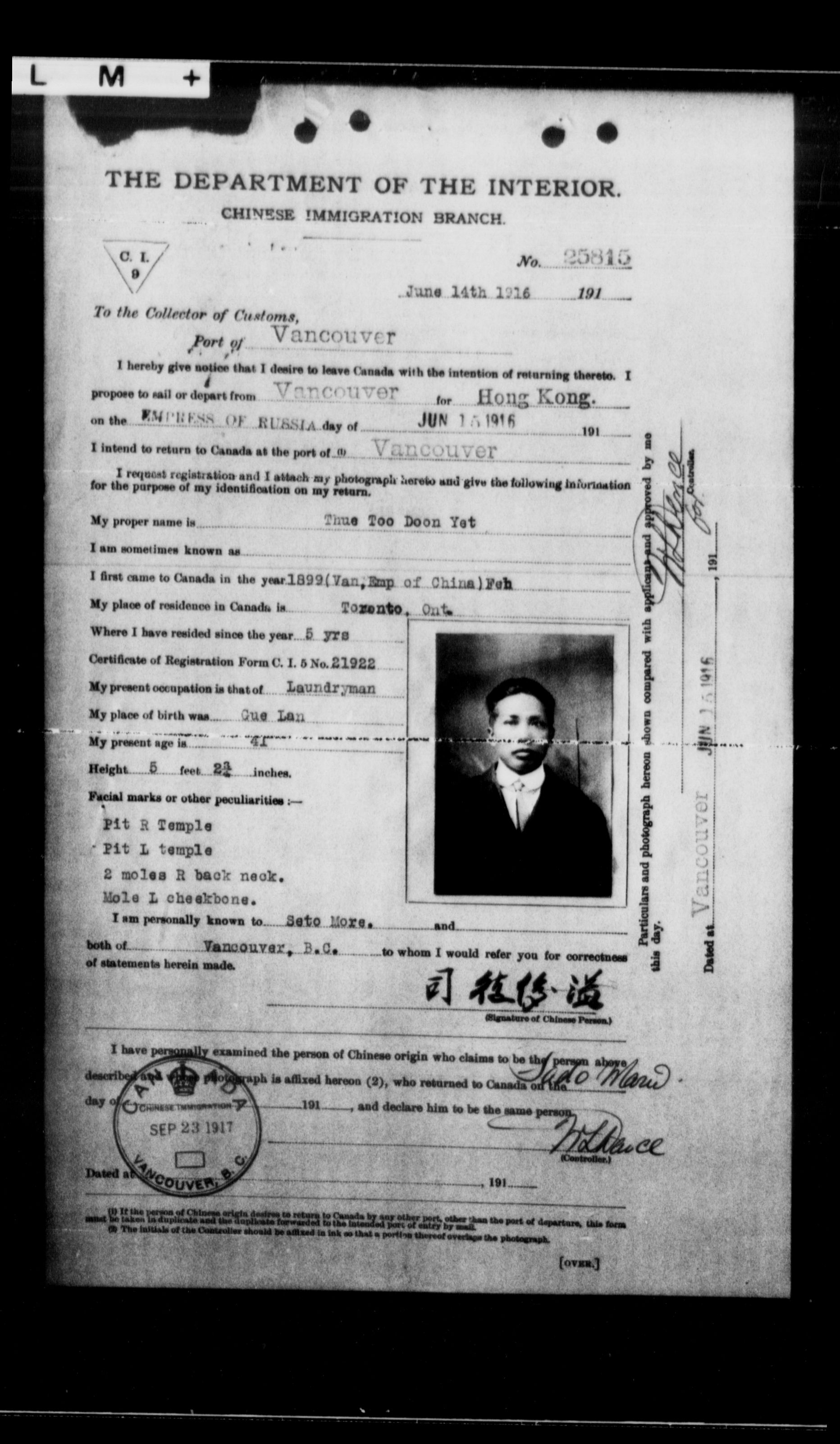 Chinese immigration records : C.I.9 certificates from Vancouver: Oct. 1913-July 1916 - 6049