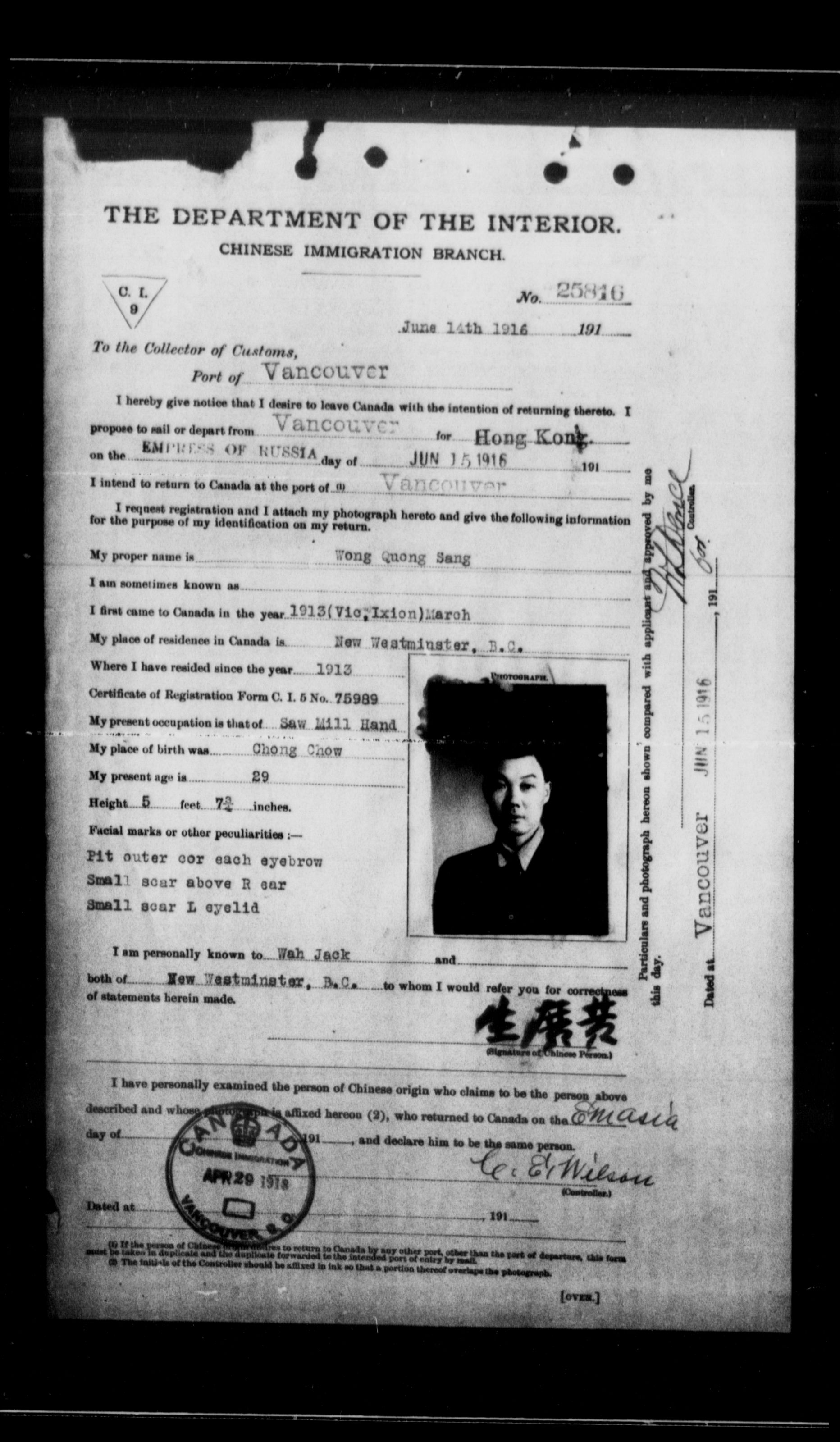 Chinese immigration records : C.I.9 certificates from Vancouver: Oct. 1913-July 1916 - 6049