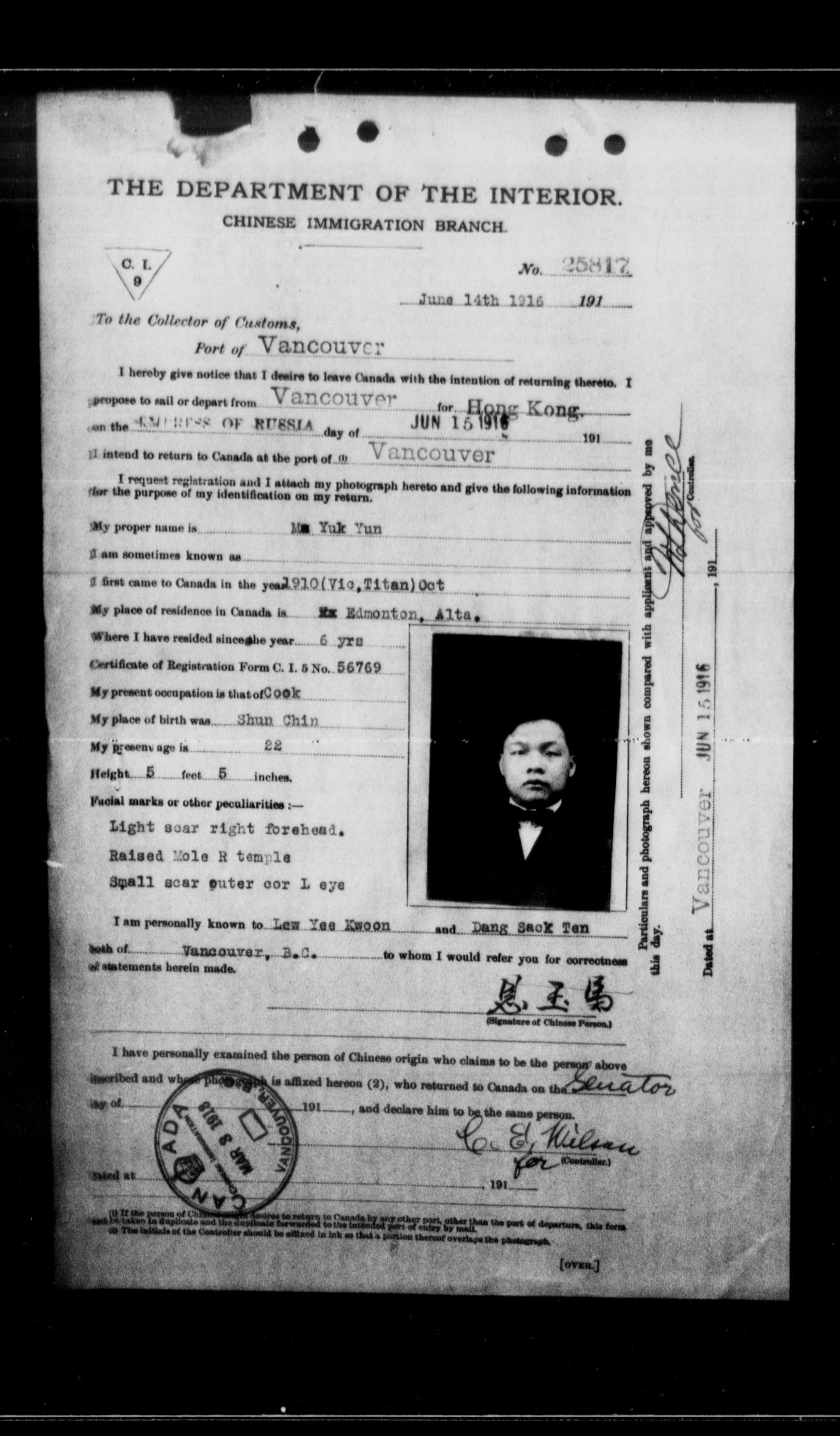 Chinese immigration records : C.I.9 certificates from Vancouver: Oct. 1913-July 1916 - 6049
