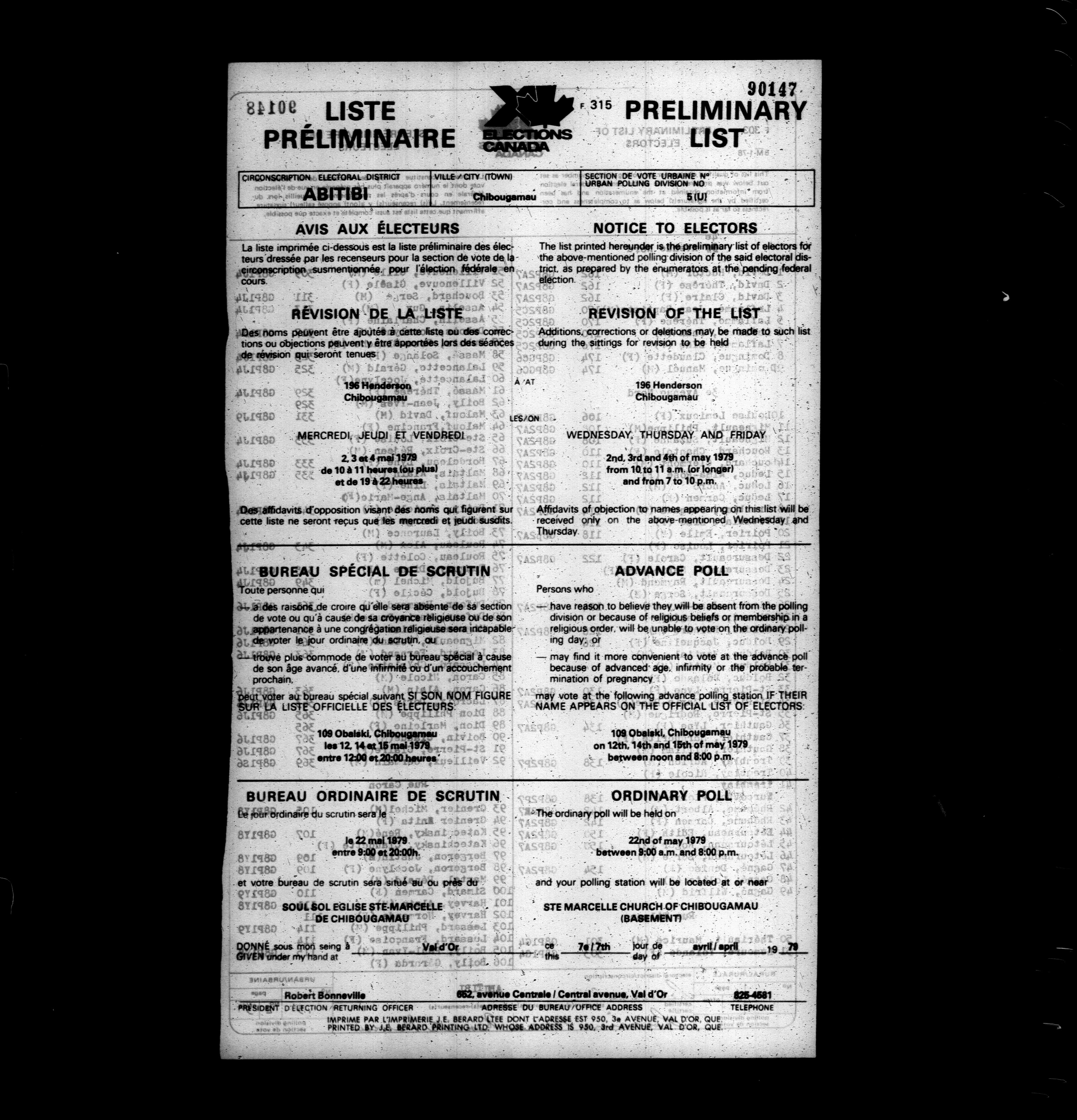 Office of the Chief Electoral Officer : Preliminary List of Electors : T-605