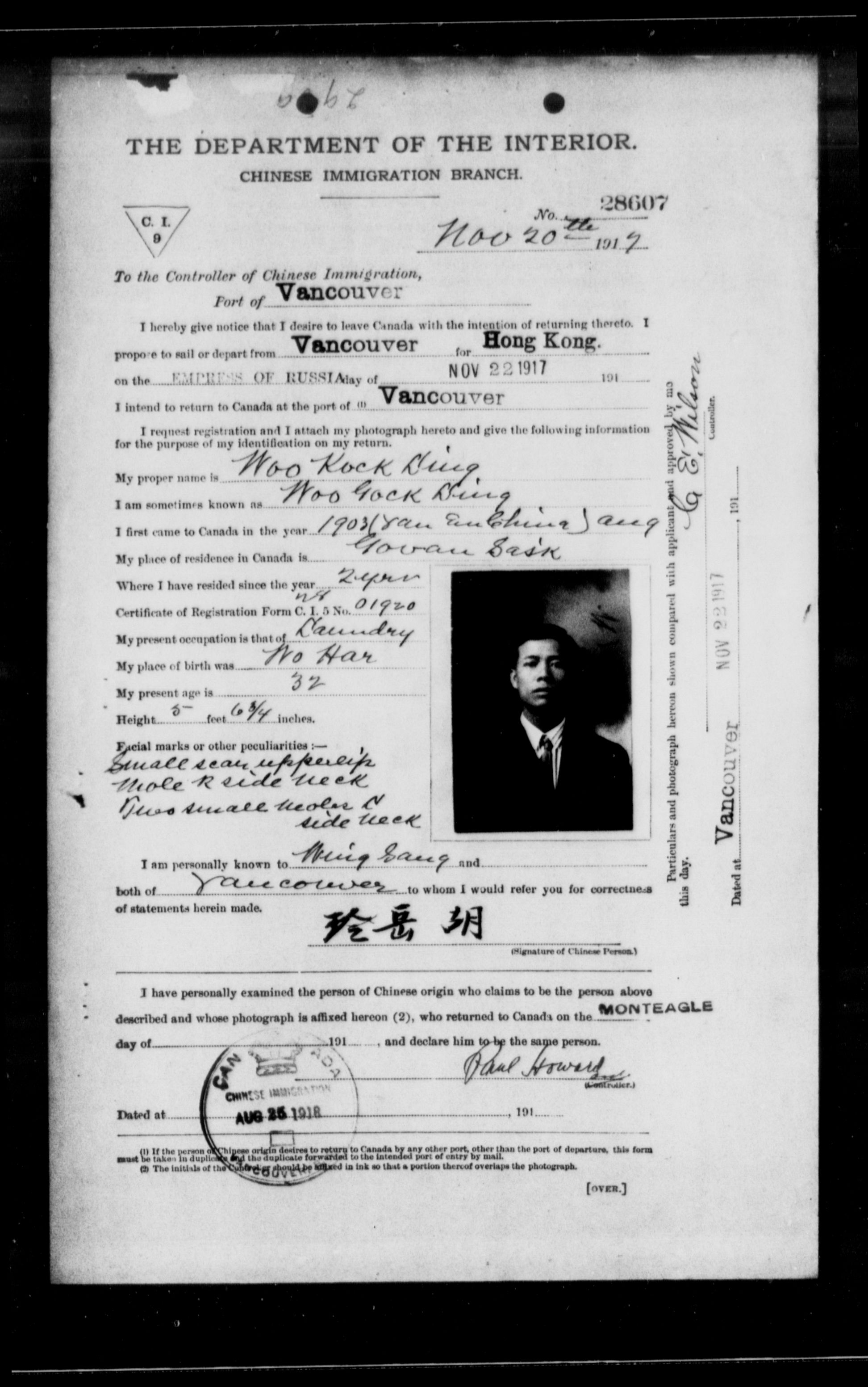 Chinese immigration records : C.I.9 certificates from Vancouver: July 1916-Nov. 1917 - 6050