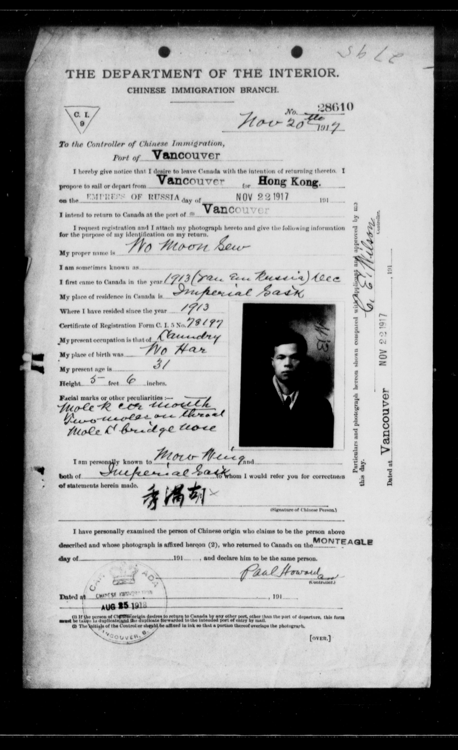 Chinese immigration records : C.I.9 certificates from Vancouver: July 1916-Nov. 1917 - 6050