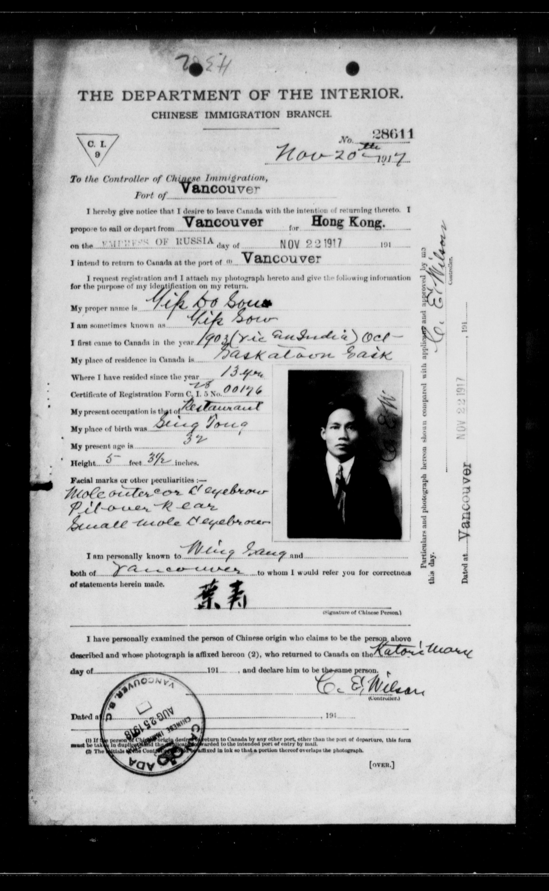 Chinese immigration records : C.I.9 certificates from Vancouver: July 1916-Nov. 1917 - 6050