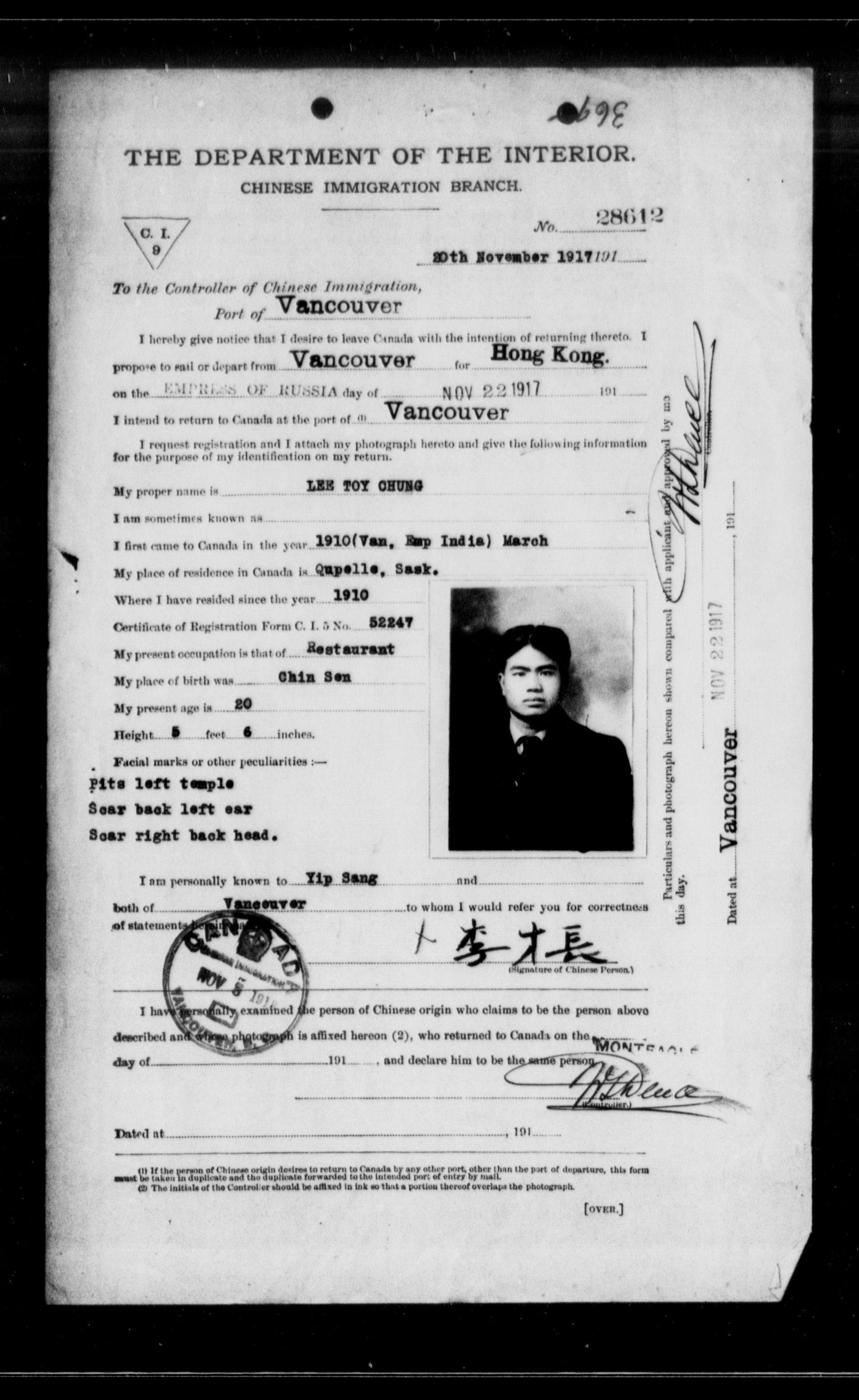 Chinese immigration records : C.I.9 certificates from Vancouver: July 1916-Nov. 1917 - 6050