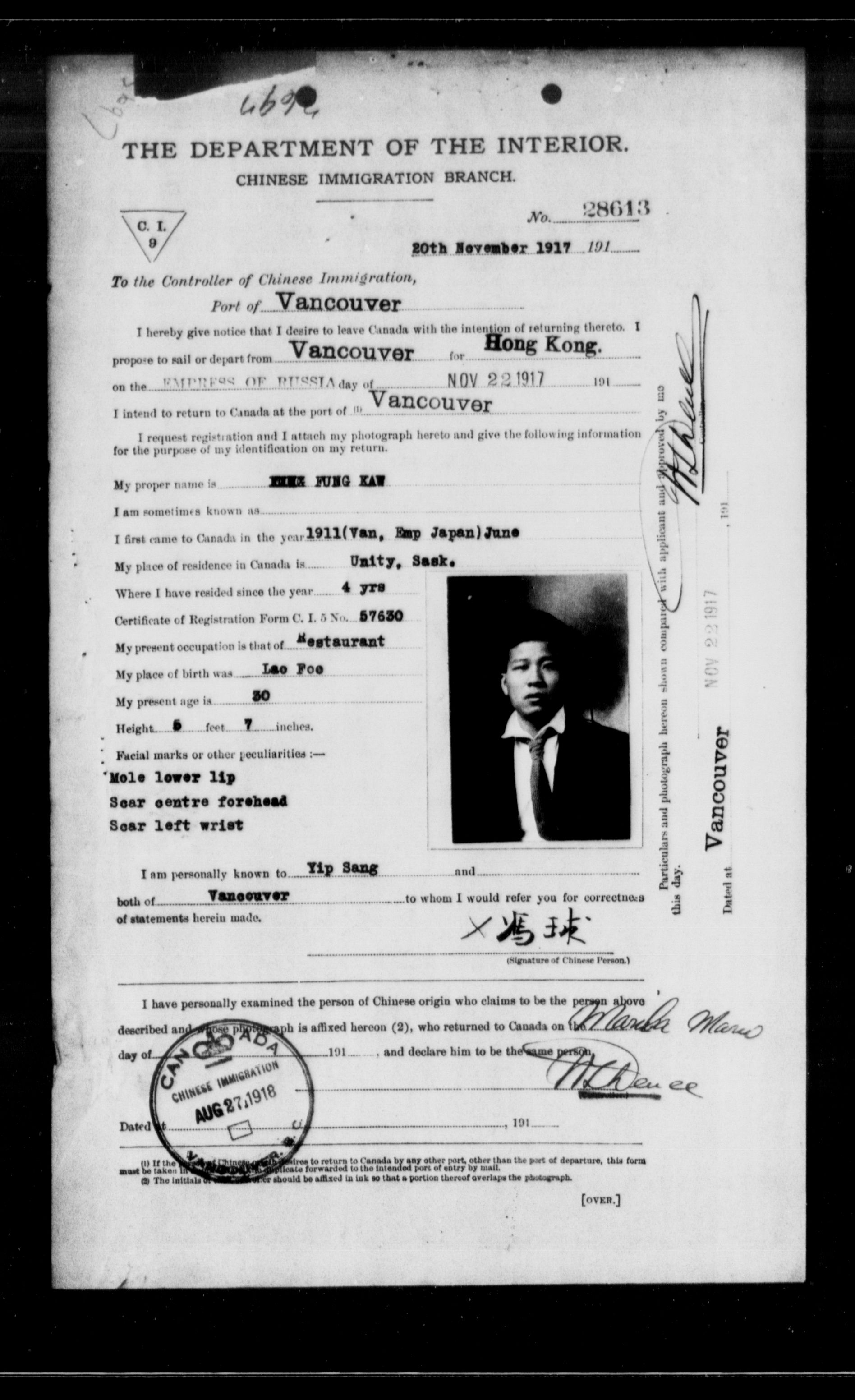 Chinese immigration records : C.I.9 certificates from Vancouver: July 1916-Nov. 1917 - 6050