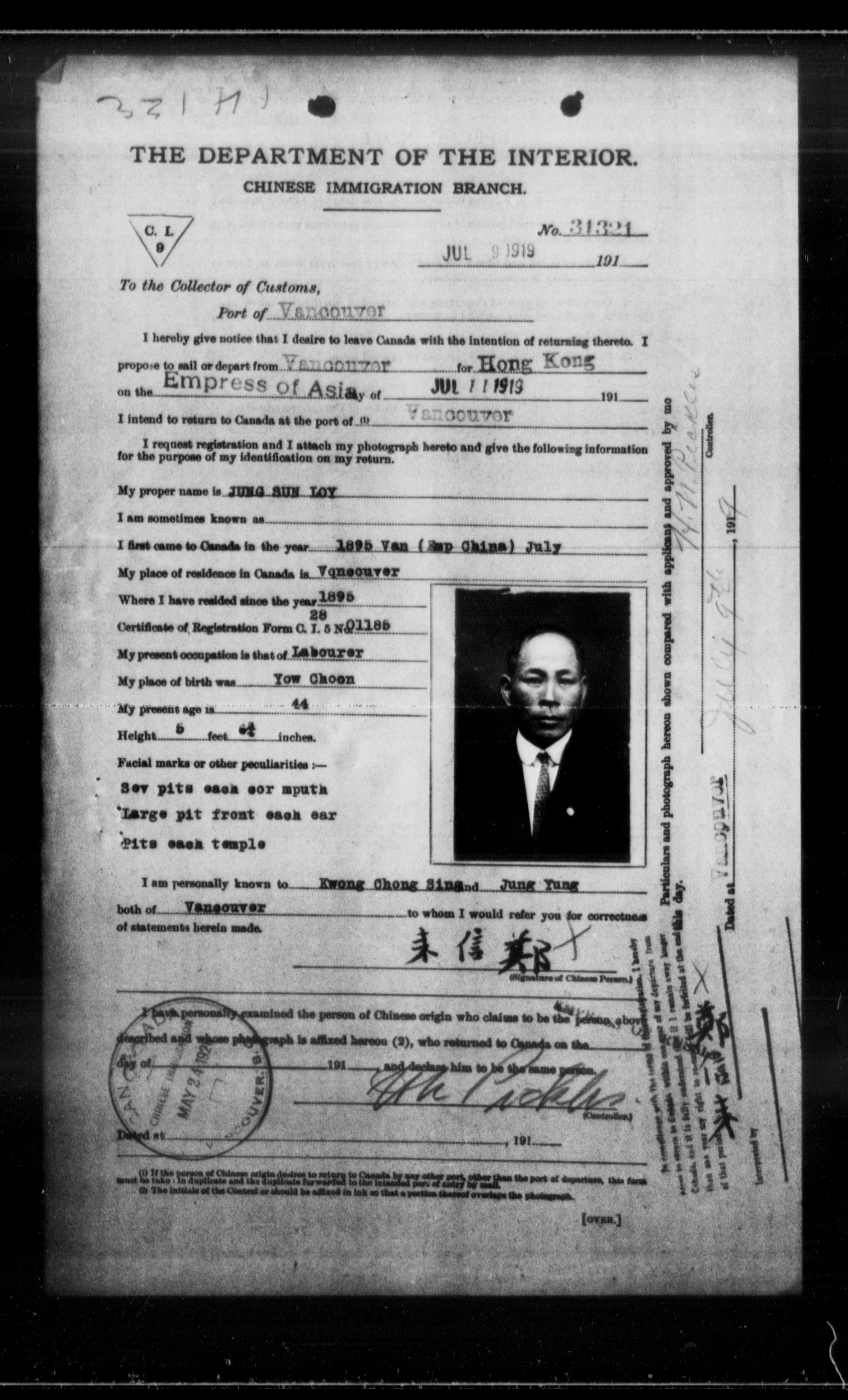 Chinese immigration records : C.I.9 certificates from Vancouver: Nov. 1917-July 1919 - 6051