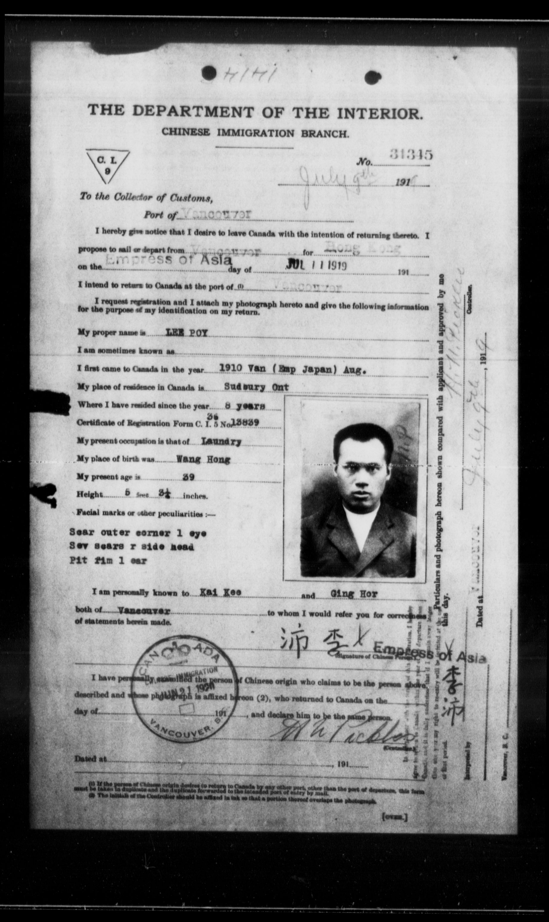 Chinese immigration records : C.I.9 certificates from Vancouver: Nov. 1917-July 1919 - 6051