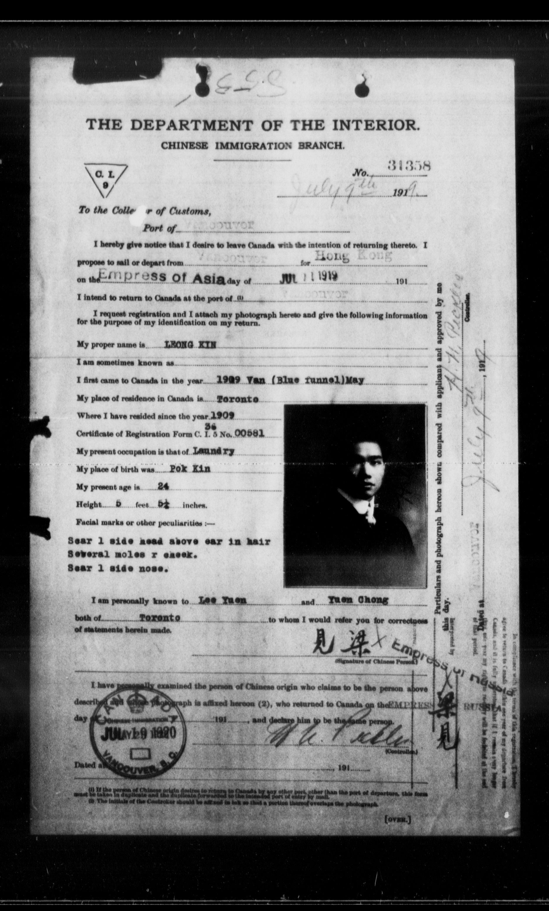 Chinese immigration records : C.I.9 certificates from Vancouver: Nov. 1917-July 1919 - 6051