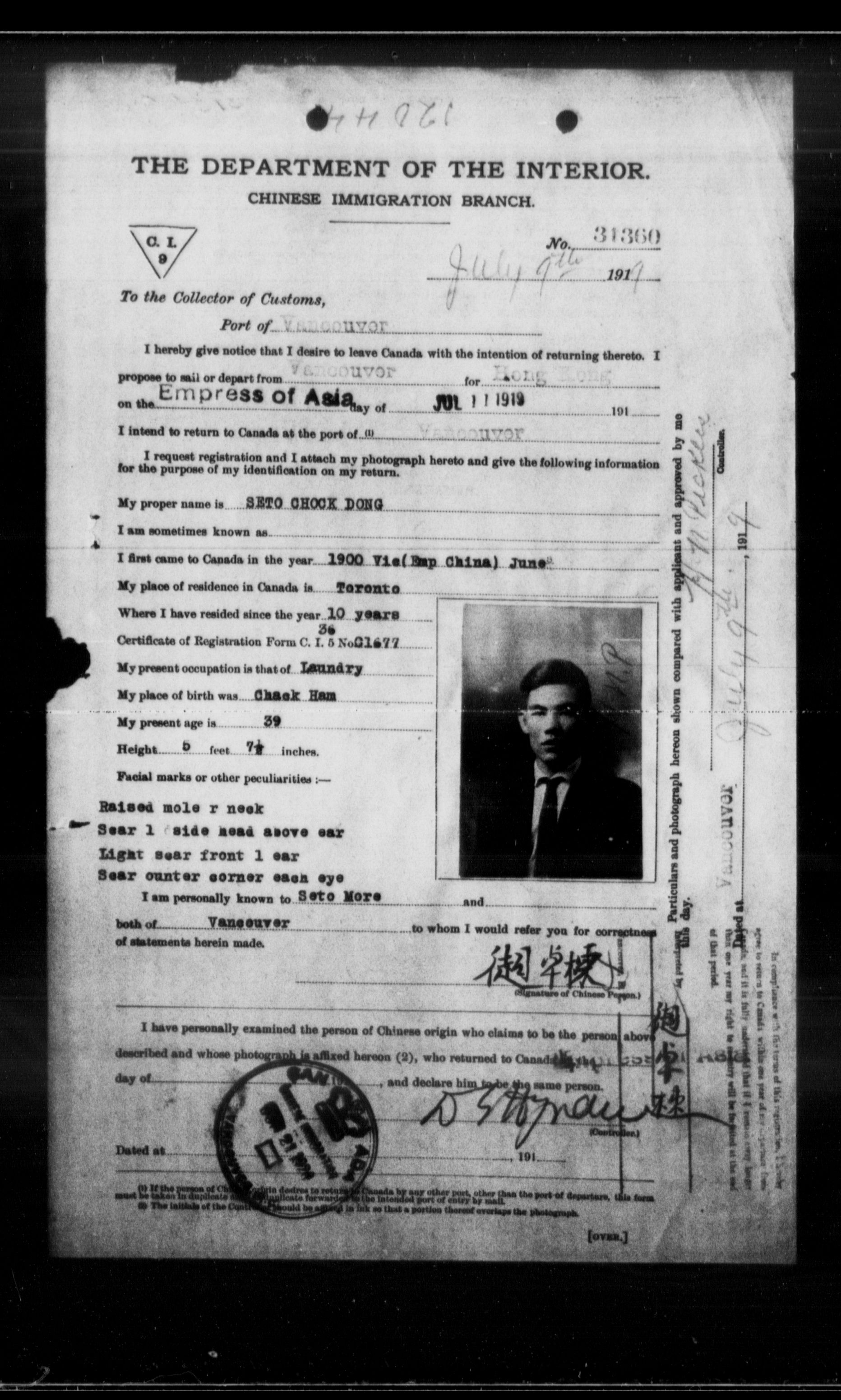 Chinese immigration records : C.I.9 certificates from Vancouver: Nov. 1917-July 1919 - 6051