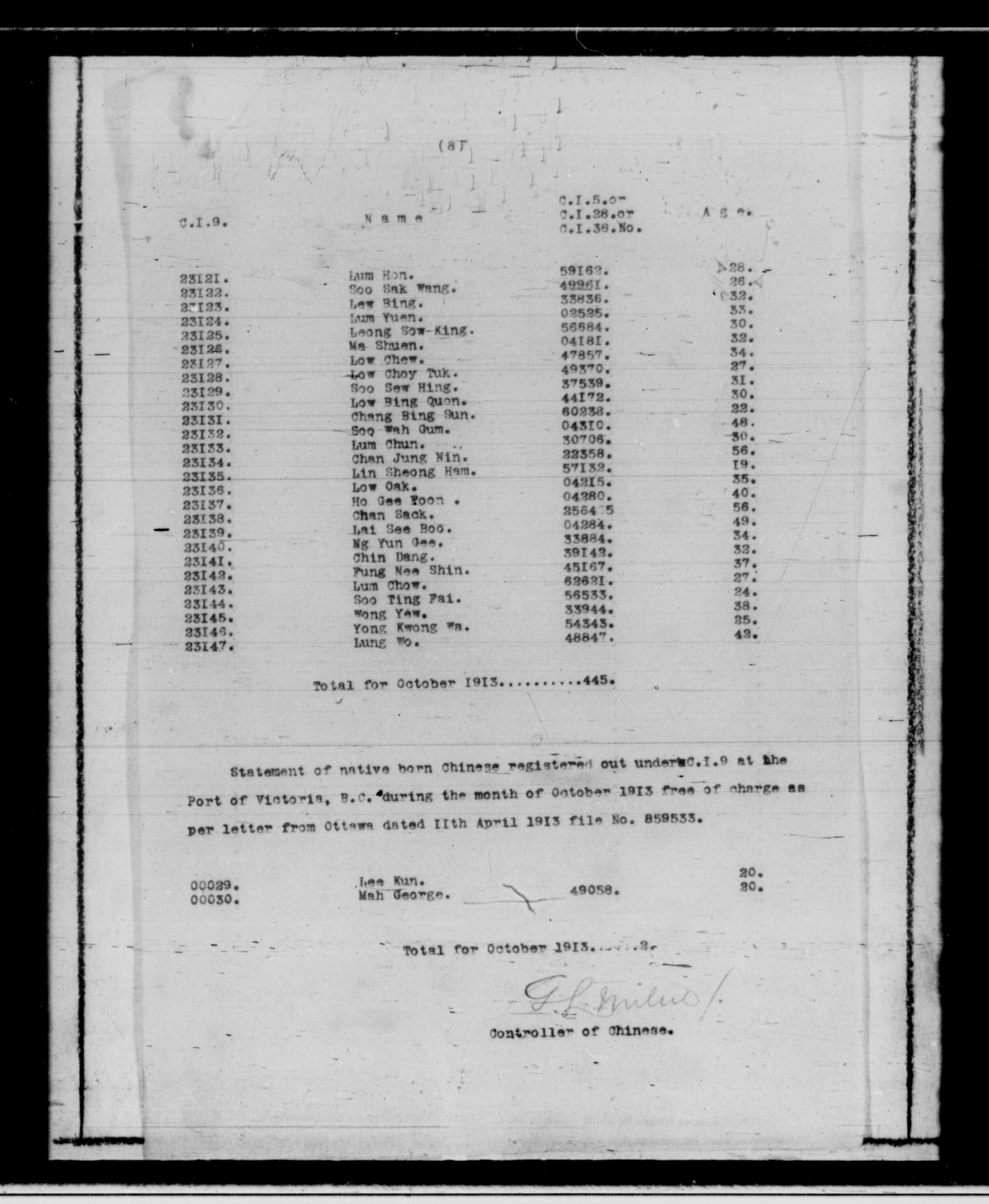 Chinese immigration records: Lists of persons to whom C.I.9 and C.I.9A certificates have been issued in Vancouver and Victoria - T-6053
