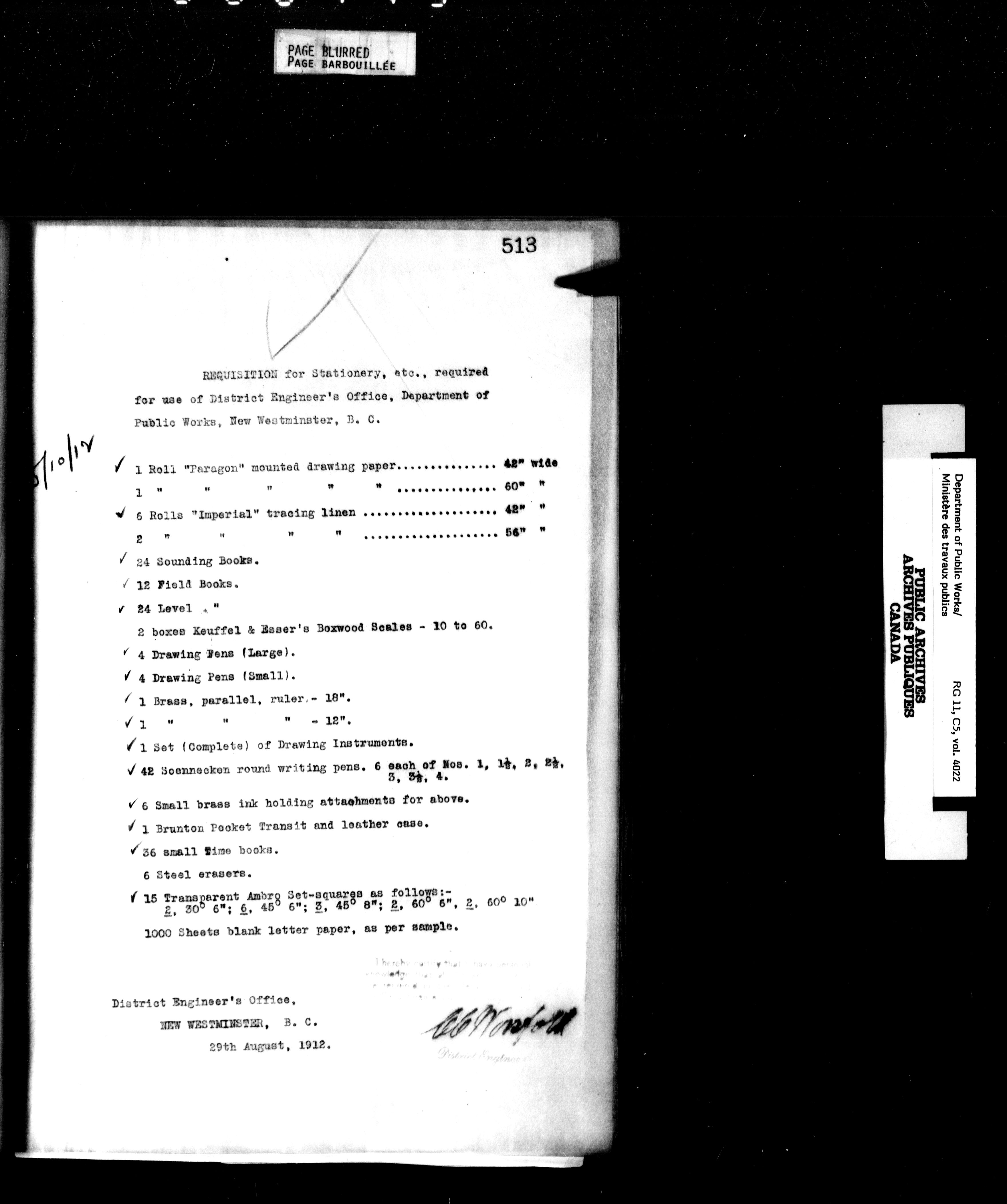 Department of Public Works : District Engineer's Office, Pacific Region letterbooks - 6073