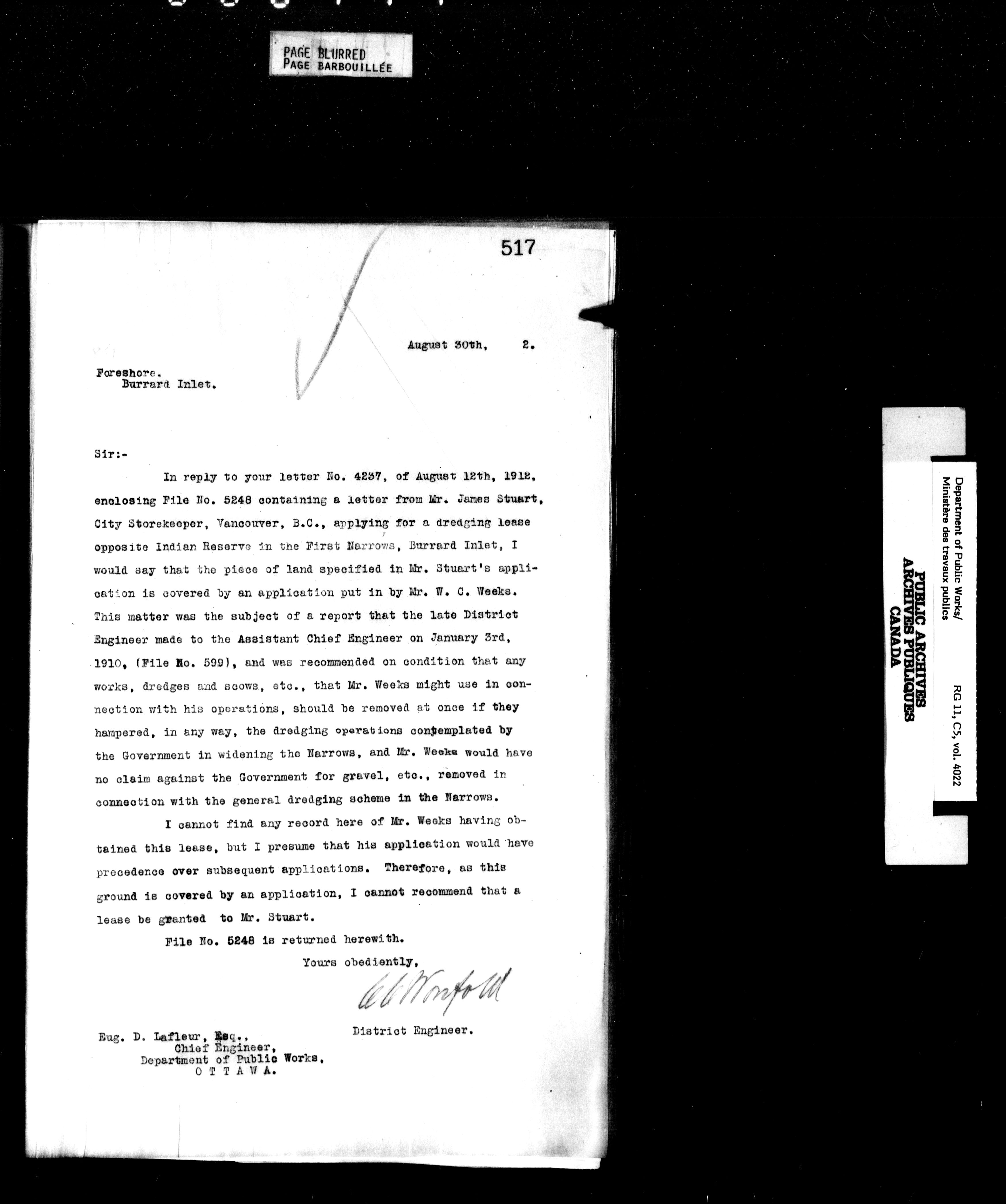 Department of Public Works : District Engineer's Office, Pacific Region letterbooks - 6073