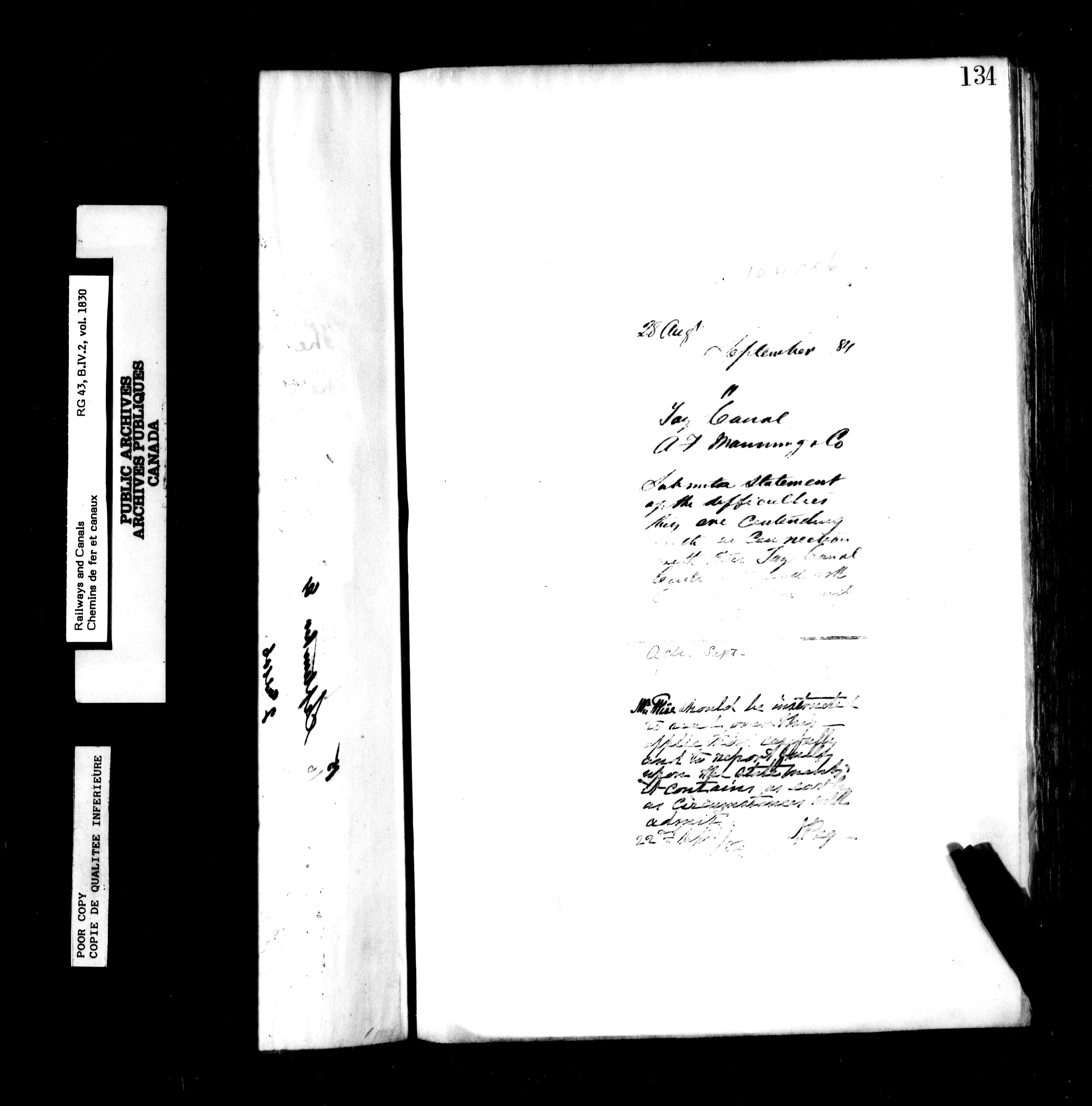 Department of Railways and Canals, Canal Branch: Office of the Chief Engineer of Canals : T-6087