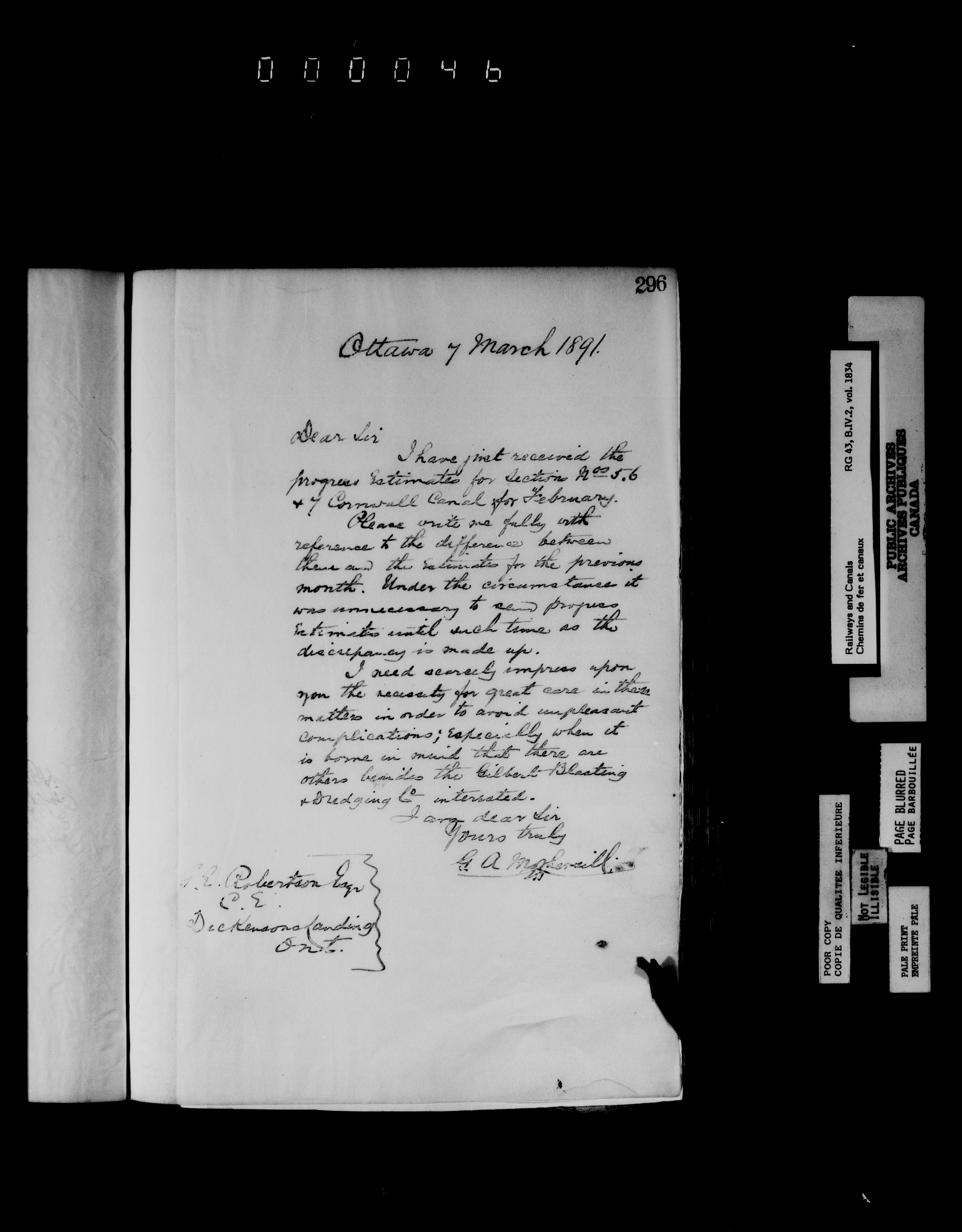 Department of Railways and Canals, Canal Branch: Office of the Chief Engineer of Canals : T-6092
