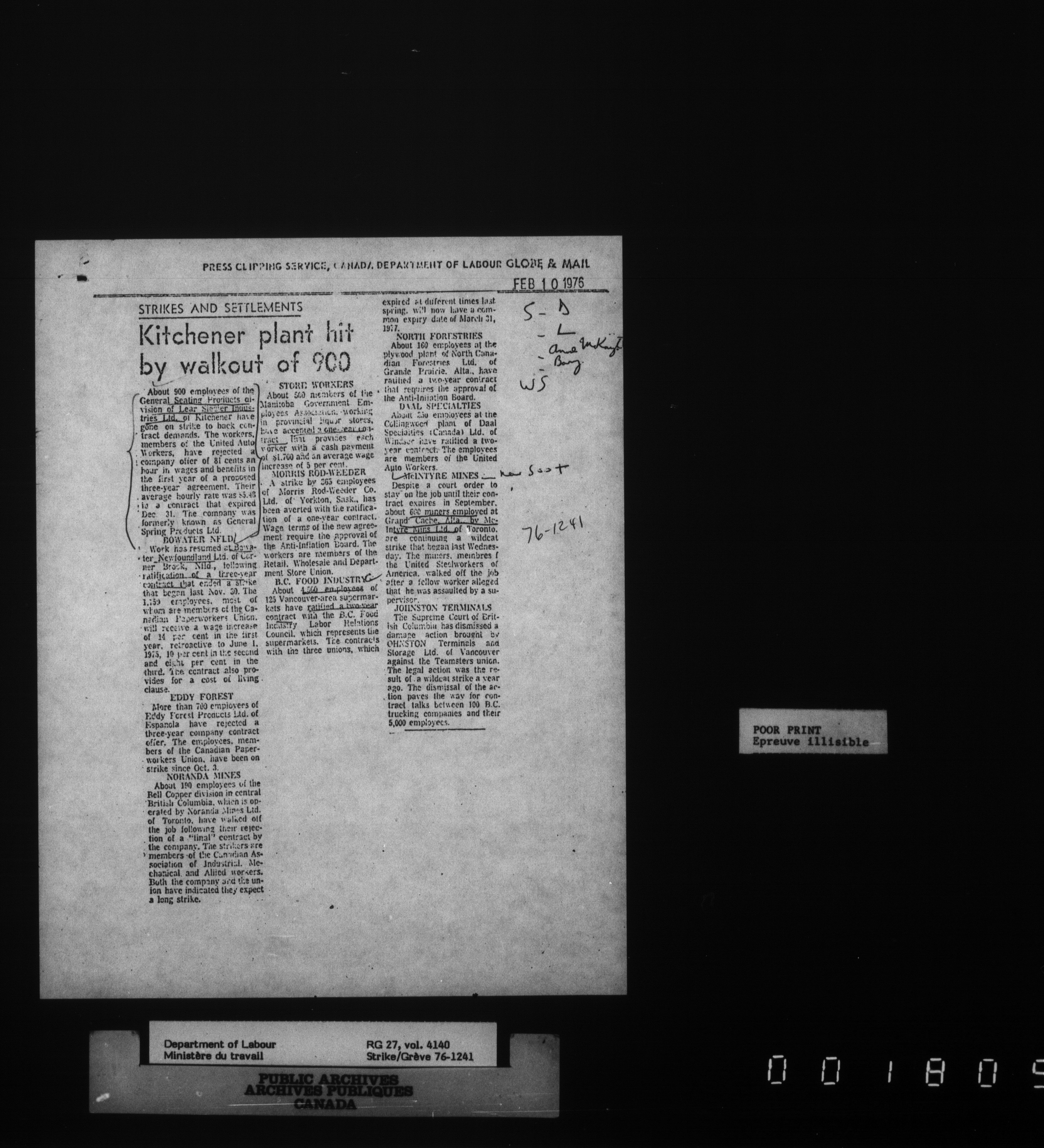 Department of Labour, Economics and Research Branch : Strikes and lockout files - 6170