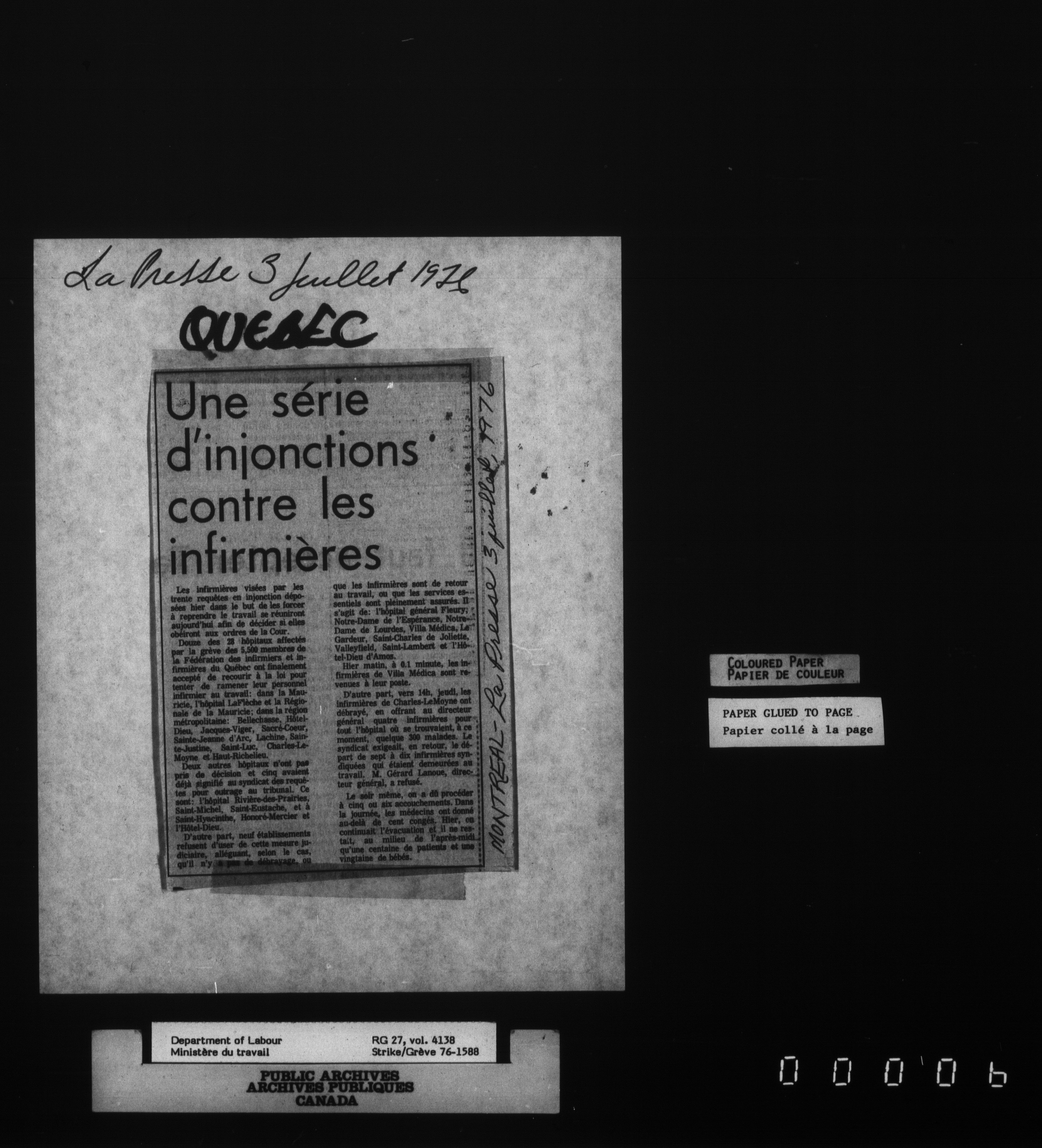 Department of Labour, Economics and Research Branch : Strikes and lockout files - 6170