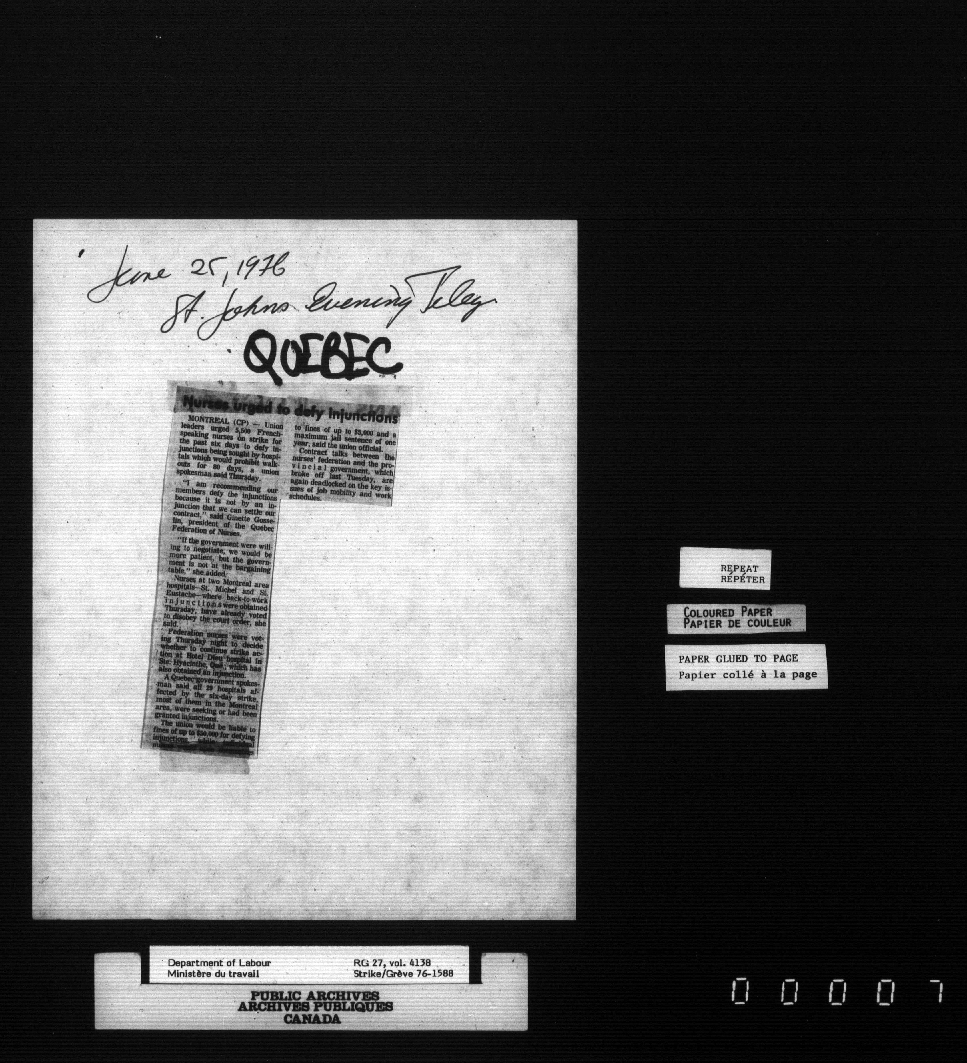 Department of Labour, Economics and Research Branch : Strikes and lockout files - 6170